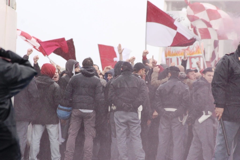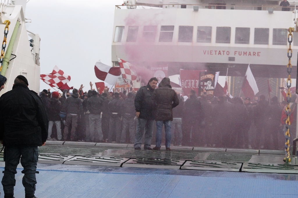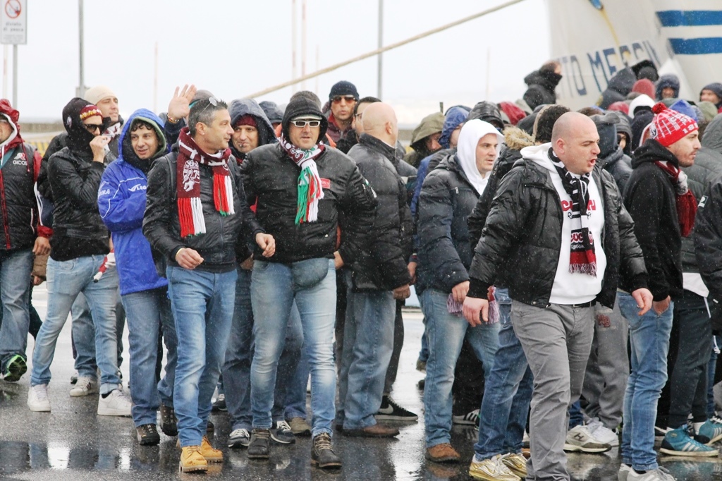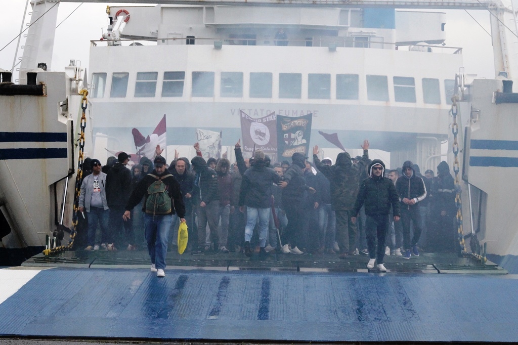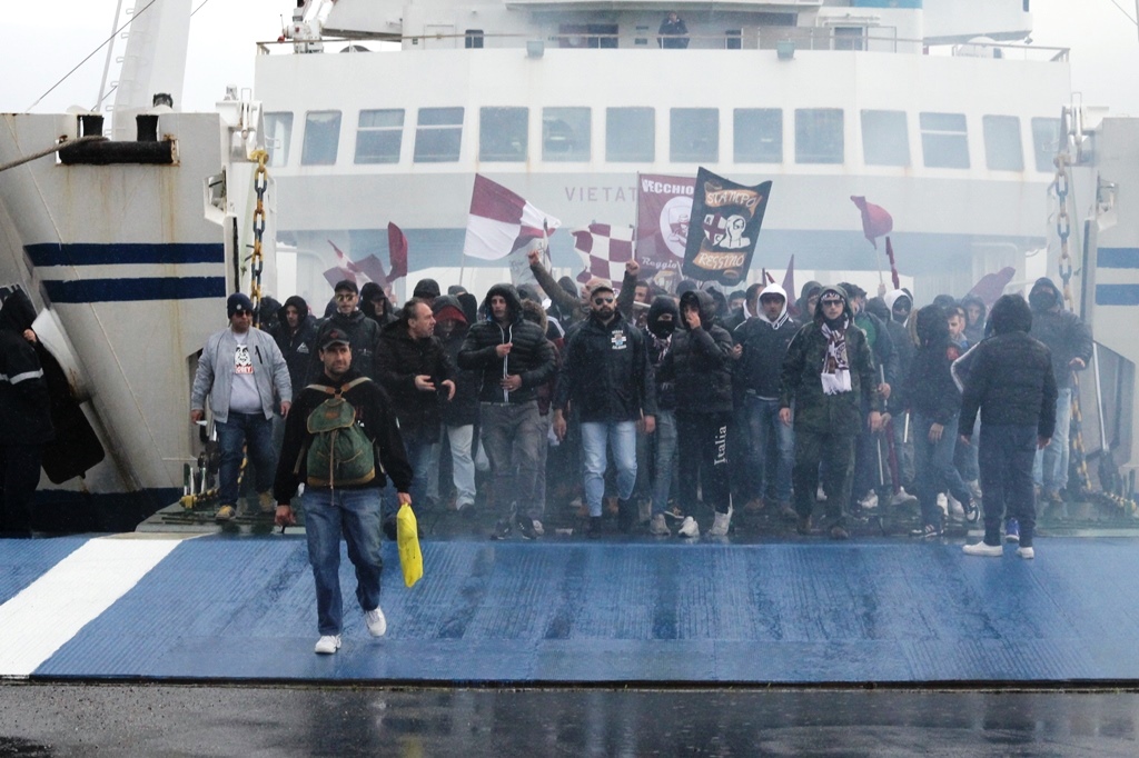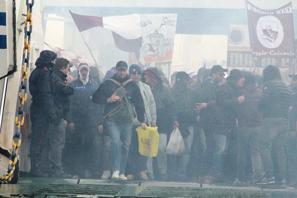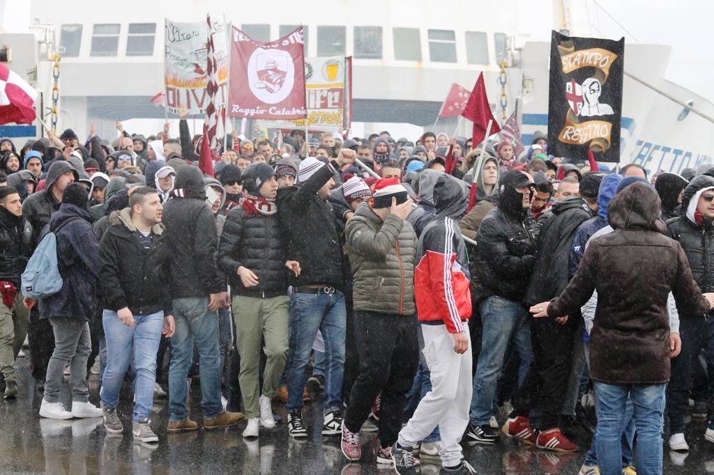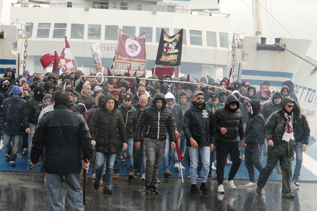 Sono arrivati intorno alle 12:15 i primi tifosi della Reggina sulla nave sbarcata allo scalo di Tremestieri: oltre 400 supporters, in attesa degli altri che sono sulla seconda nave speciale messa a disposizione dalle autorità per il Derby dello Stretto. Saranno oltre 650 i tifosi della Reggina assiepati nel settore ospiti di uno stadio San Filippo in cui sono attesi complessivamente circa 5.000 spettatori, poco più di 4.000 messinesi.