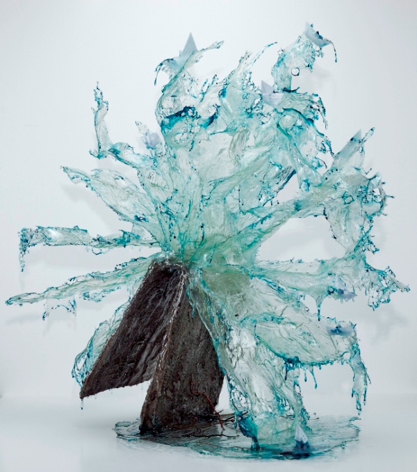 Annalù Boeretto, Il libro della tempesta, 2014, resina, carta, inchiostri, cm 250x100x250; Salto nel blu, 2015, resina ed inchiostri, cm 60x28x28