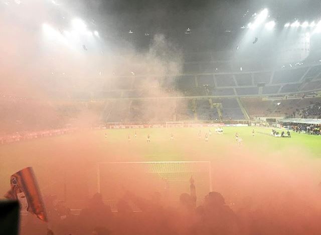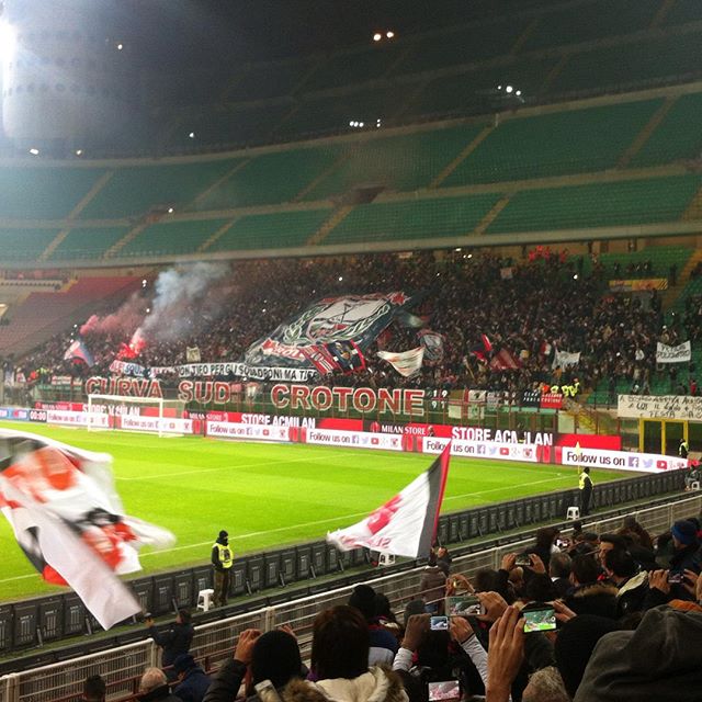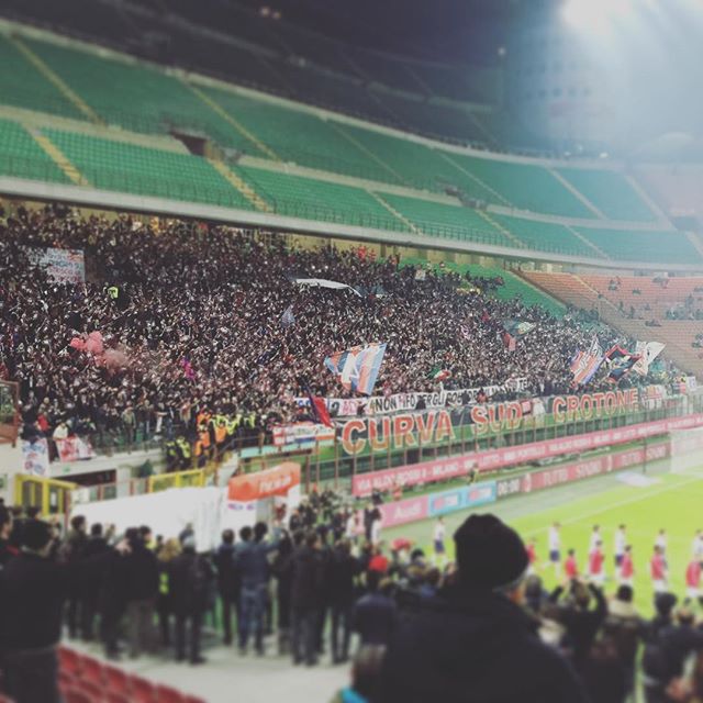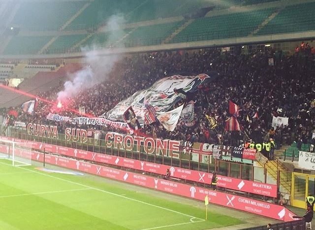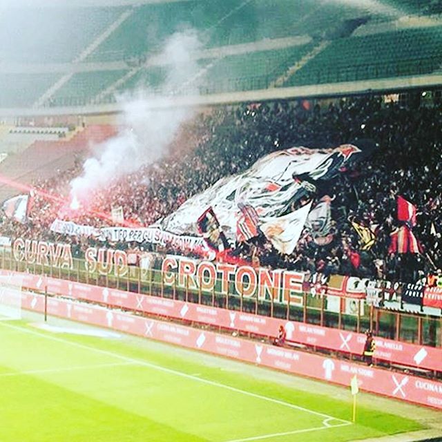Stasera è tutta un’altra storia, innanzitutto perché per il Crotone è la prima volta a San Siro e sugli spalti è uno spettacolo straordinario con oltre 5.000 tifosi pitagorici in Curva Nord e nelle altre Tribune dello stadio Meazza, ma anche in campo i calabresi sono di un altro livello (non a caso secondi in classifica in serie B) e stanno dando grande filo da torcere al Milan di Mihajlovic, costretto a mandare in campo i “big” Bonaventura e Niang a 15 minuti dalla fine per cercare la vittoria. Il risultato parziale è infatti di 1-1, al vantaggio del Milan con Luiz Adriano al 2° minuto della ripresa ha risposto un ottimo Budimir al 23° del secondo tempo.