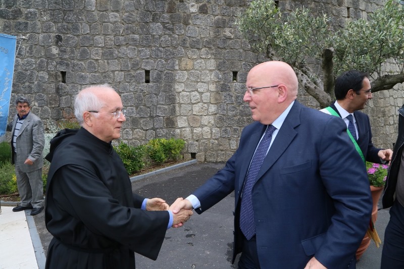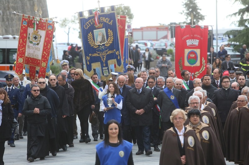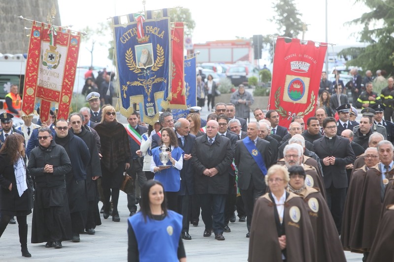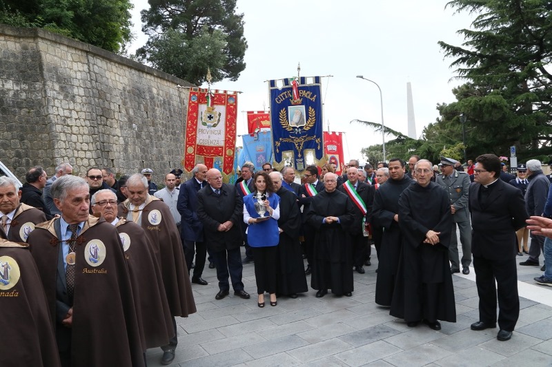 o le braccia ai disperati che arrivano da paesi flagellati da guerra e fame. Credo non ci sia un modo più alto per celebrare i sentimenti che ispirano questo momento solenne. Questo rende la devozione dei calabresi prassi quotidiana di vita. Ieri sono stato a Riace, il paese emblema nel mondo dell’accoglienza, valore della dignità umana nel quale crediamo. Proprio dinanzi a quella comunità, dinanzi a tanti migranti, ai loro bambini, ho affermato che siamo pronti a mettere in campo un progetto di accoglienza come quello di Riace in tutta la Calabria. Al mondo che proietta come vincenti modelli negativi, noi rispondiamo con la bontà, una parola semplice e fuori moda, che non si deve aver paura di pronunciare. I problemi generati dagli squilibri economici nel mondo non si affrontano e non si risolvono costruendo muri sui confini. I muri alimentano odio e generano guerre, allontanano la pace. Il Giubileo della misericordia voluto da Papa Francesco deve far riflettere anche chi governa sui processi in atto, difficili e complessi da affrontare, ma che sono comunque il nostro nuovo pane quotidiano. Noi vogliamo che la pace in terra sia un progetto a cui si deve lavorare ogni giorno, e chi ha funzioni di governo ha il dovere di fare la propria parte con senso di responsabilità e concretezza. La comunità calabrese è in festa per il sesto centenario della nascita di un uomo straordinario che con il suo passaggio ha illuminato la storia della Fede. Questa ricorrenza non è da ritenersi quale circostanza esclusivamente celebrativa, contrassegnata da un tempo di inizio ed uno di fine; ma come una spinta forte verso una costruzione nuova, positiva, per la nostra terra che non deve esaurirsi nel volgere di qualche mese. Dobbiamo cogliere questo appuntamento come possibilità di riflessione sulla figura di San Francesco, sulla sua eredità spirituale, sul suo messaggio sempre attuale. Dobbiamo fare in modo che ancora più approfondita sia la conoscenza della sua azione. Il sesto centenario, sostenuto dalla Regione è celebrato secondo un programma di appuntamenti, coordinato da un Comitato, definito insieme ai Padri Minimi, instancabili nell’opera di custodia, nella diffusione del messaggio di San Francesco nelle realtà che sorgono in suo nome in tanti Paesi.
