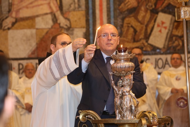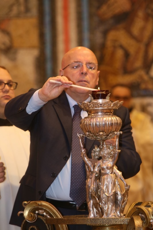 Prima del rito, il Presidente Oliverio, che ha ricevuto dal Correttore Generale dell’Ordine dei Minimi Padre Francesco Marinelli un quadro che rappresenta la nascita del Patrono della Calabria , ha tenuto un discorso, di seguito riportato. “ Il rito dell’accensione della lampada votiva al Patrono della Calabria è vissuta ogni anno con profonda emozione dalla comunità dei fedeli devoti qui e ovunque nel mondo. Ci ritroviamo uniti nella devozione che costituisce una rete invisibile, ma forte e resistente. Una rete che valica le montagne e gli oceani, salda nelle nazioni che hanno accolto i figli della nostra terra. Una rete che attraversa il tempo e scandisce la memoria storica della nostra appartenenza. Quest’anno ci sono ulteriori motivi a rendere l’avvenimento ancora più rilevante. Ricorre il sesto centenario della nascita di San Francesco di Paola e il mondo cattolico celebra il Giubileo straordinario della Misericordia voluto da Papa Francesco. Come la Carità e la Misericordia hanno ispirato l’agire di Francesco di Paola nel suo cammino terreno così il Pontefice le richiama agli uomini contemporanei , perché possano riflettere sul loro significato e praticarle. Sono i valori cardine che devono regolare l’azione di chi è portato oggi a rappresentare con i fatti il messaggio cristiano nel mondo e in questa terra. Lo dico perché la Calabria è terra di accoglienza e di inclusione.