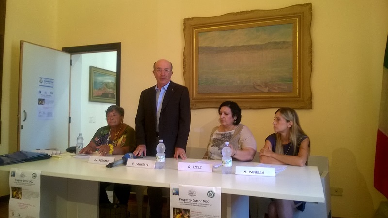 E’ la volta della dott.ssa Maria Antonella Ferraro, responsabile scientifico Diabaino, la quale ha dichiarato che “le persone che conoscono la loro patologia possono far in modo di non farla trasformare in malattia. Questo processo è possibile solo se si è assistiti da una buona equipe medica. Noi possiamo addestrare dei cani in grado di aiutare le persone ed in grado di assistere le famiglie. Questi cani sono in grado di percepire gli odori dati dal cambiamento di salute dovuto all’iperglicemia e all’ipoglicemia. Il cane può fornire quanto necessario al soggetto, abbaiare per dare l’allarme e persino spingere il bottone del 118. Questa pratica è molto diffusa in America, nel Nord Europa e adesso arriva anche in Italia“. E’ la volta di AnnaLisa Panella, Presidente Ass. A.M.A.T.A. “Luna Nuova”, la quale dichiara che “la Calabria è una delle regioni che riconosce gli interventi assistiti come supporto alla terapia. Il cane può dare un sostegno psicologico. Il corso di addestramento dei cani sarà suddiviso in due step. La prima fase vedrà la selezione dei cani che possono essere utilizzati per la pet therapy e come cani da allerta ed una seconda fase in cui il cane sarà addestrato. I cani saranno introdotti nelle scuole di ogni ordine e grado. Al momento questo è avvenuto per una scuola primaria, dove sono stati ottenuti ottimi risultati soprattutto con i bimbi disabili“.
