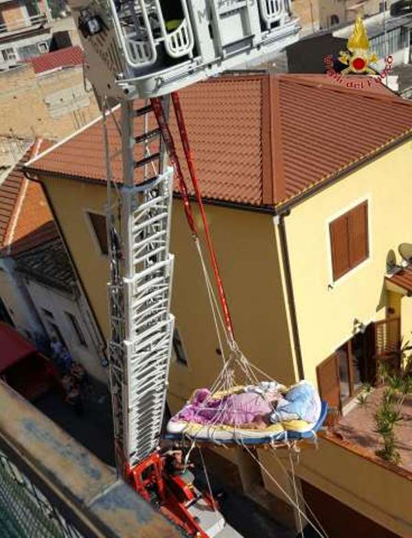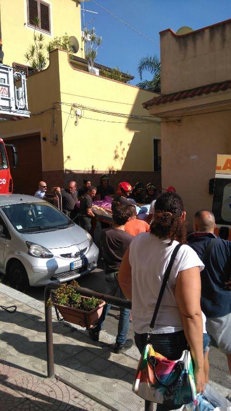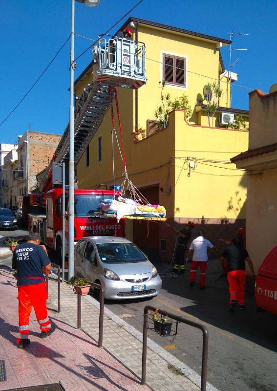 Spettacolare intervento di soccorso tecnico urgente, quello portato a termine questo pomeriggio nella periferia est della città, da una squadra dei Vigili del Fuoco del Comando Provinciale di Reggio Calabria. Allertati dal 118, intervenuto per il trasporto urgente in ospedale di una donna in sovrappeso, i Vigili del Fuoco hanno costruito in brevissimo tempo, con del cordame ed i pezzi di una scala italiana, una barella adattata al trasporto della degente, purtroppo impossibilitata a deambulare. Le condizioni della stessa, che non ne hanno permesso il trasporto neanche attraverso la scala condominiale, hanno spinto gli specialisti SAF dei Vigili del Fuoco (Speleo Alpino Fluviali), intervenuti a supporto della squadra VF terrestre, ad utilizzare le tecniche di specialità per collegare la barella all’autoscala e calare la donna dal balcone della sua abitazione sita al 4 piano di uno stabile, in totale sicurezza fino al piano stradale, per poi adagiarla all’interno dell’ambulanza. Plauso dei parenti e degli avventori del posto, entusiasti per la professionalità e, soprattutto, per la premurosità dimostrata nei confronti della donna.