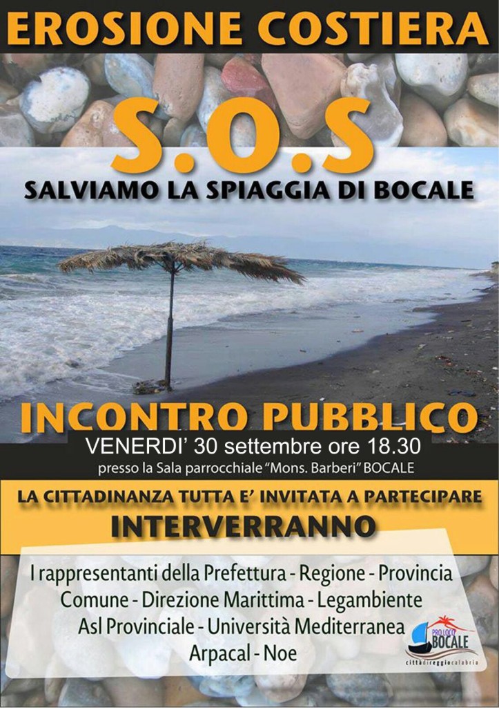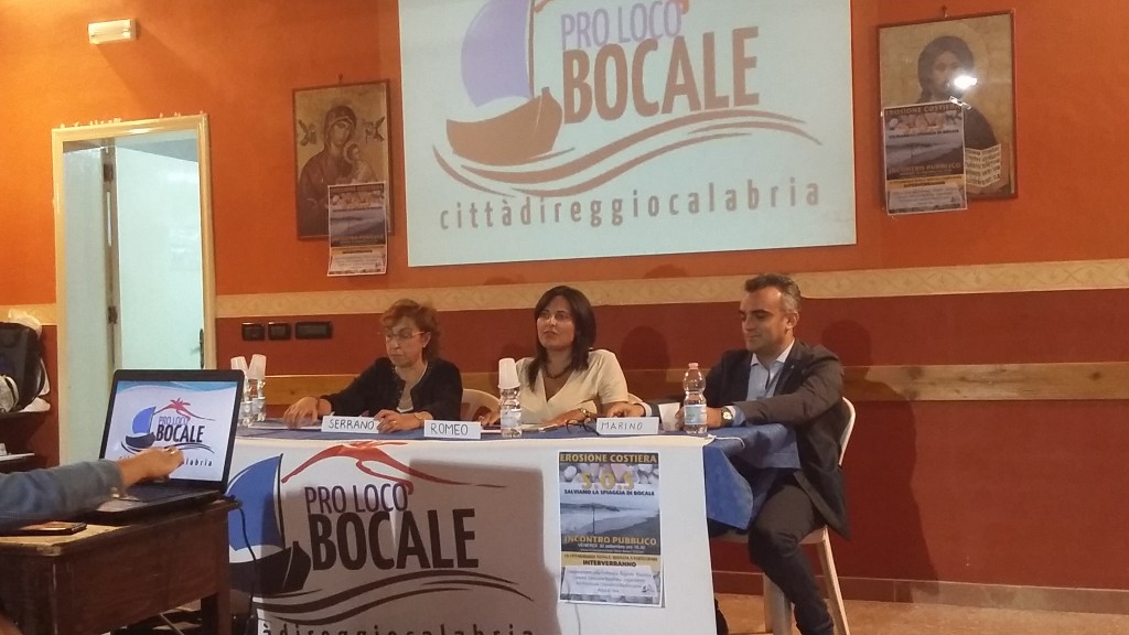 Incontro SOS erosione costiera svoltosi alla sala parrocchiale Barberi nel giornata del 30 settembre 2016. Sono intervenuti Concetta Romeo presidente Pro Loco Bocale, Giuseppe Marino, assessore alle Politiche Sociali del Comune di Reggio Calabria, la dott.ssa Paola Serranó per quanto riguarda i rischi alla salute per la presenza di amianto. Dopo le presentazioni a cura di Concetta Romeo interviene l’assessore Marino il quale dichiara che l’iter che ha portato al progetto delle opere di salvaguardia della costa è stato infelice per più motivi. Il primo progetto si è bloccato per fatti relativi alla non idoneità della ditta appaltante.Successivamente si è passati ad un secondo progetto che necessariamente ha avuto bisogno di un nuovo decreto di VIA (valutazione di impatto ambientale). A Germaneto le visite alla Regione Calabria sono state frequenti. Lo stesso finanziamento riferito ad Amantea ha già dato dei frutti: due pennelli già posizionati. Nel frattempo a Bocale le mareggiate hanno creato altri danni. Per evitare ulteriori dissesti stradali ed alla illuminazione pubblica il Comune si è attivato con procedura di urgenza attingendo a risorse relative al rischio idrogeologico e dando incarico ad una ditta rilevata da White list. Si è evitata così la distruzione della strada nella zona del lido Sciao. I massi così posizionati non sono una soluzione definitiva. Anzi in futuro saranno recuperati secondo il progetto di salvaguardia del litorale. Si prevede di andare a breve a Catanzaro con una delegazione della Proloco per chiarire tutti gli aspetti relativi ai lavori da effettuare. La Presidente Concetta Romeo ha dichiarato: “abbiamo portato la problematica all’attenzione della cittadinanza che questa volta ci ha deluso in quanto scarsa è stata l’affluenza!! Siamo convinti che la cittadinanza è ormai sfiduciata ma le battaglie si vincono con la partecipazione!! Non ci si può solo lamentare e poi non partecipare agli incontri pubblici che si fanno per mantenere sempre alta l’attenzione al problema!! Dopo i precedenti 4 incontri, nel corso di quest’anno, molto partecipati, il risultato è prontamente arrivato!! Grande è la ns soddisfazione per aver ottenuto la rimozione dell’amianto e la messa in sicurezza della spiaggia, dopo quasi due anni di appelli e denunce precedenti!!! Dobbiamo tutti insieme spingere la politica affinché si provveda a far attuare le opere di salvaguardia costiera nel più breve tempo possibile!! Ecco perché i nostri incontri sono diventati trimestrali. Intervento della dott.ssa Serranó: 94% dei manufatti nella zona di Reggio Calabria contengono amianto. Si prevede un censimento a cura del Comune. Un progetto cercherà di mettete in evidenza l’importanza di collaborazione tra cittadini, scuole, (con l’ausilio di un supporto informatico) alunni e genitori. Si definiranno interventi risolutivi sui manufatti a cura di ditte specializzate a costi calmierati. Si parla di 8 – 10 euro /mq Conclude Concetta Romeo ricordando ai presenti che il prossimo appuntamento sarà esattamente fra tre mesi.