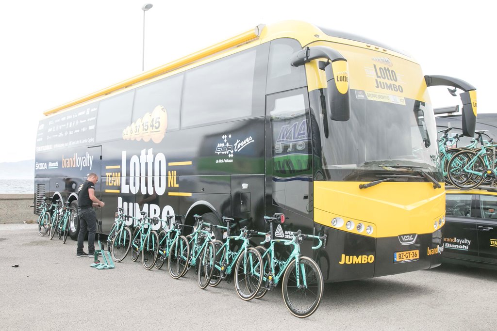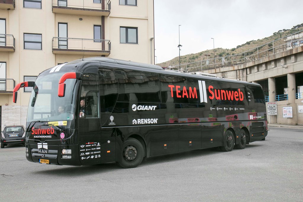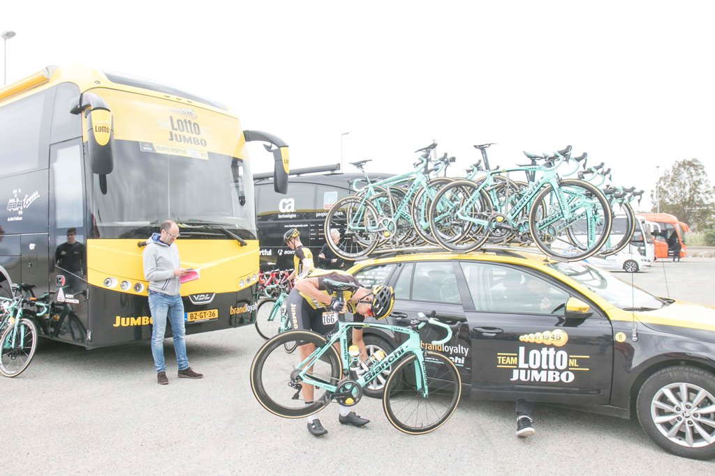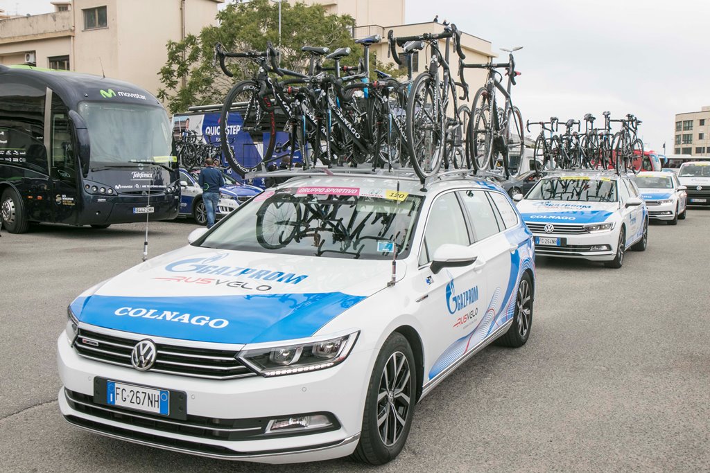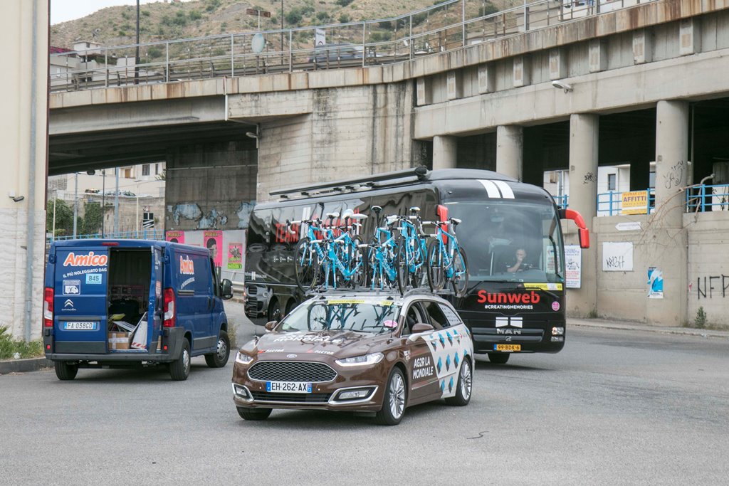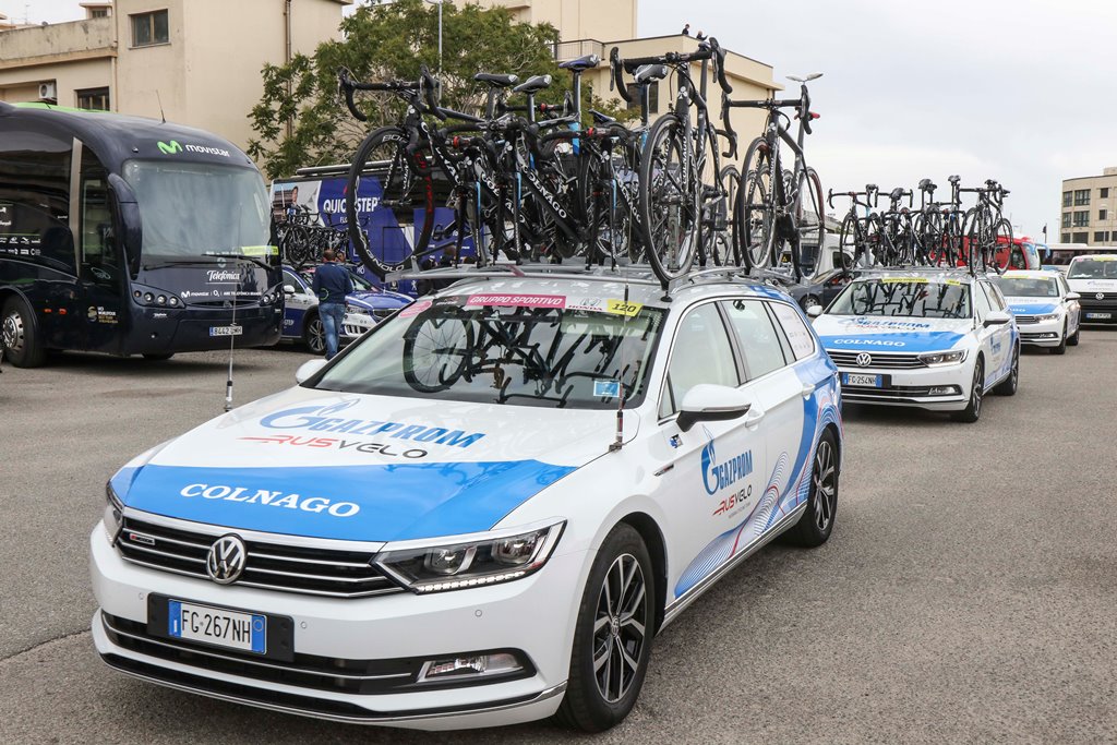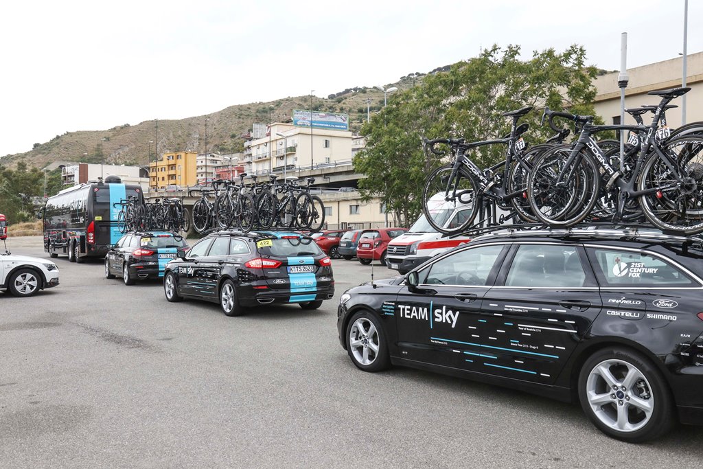 Tutti i bus con i 191 corridori in gara, i direttori sportivi, i tecnici, i manager, i meccanici e i vari addetti dei 22 team sono stati quindi, in modo imbarazzante, spostati nel Piazzale Nord, fuori dal Porto, praticamente a Pentimele, ad oltre 3km di distanza! I ciclisti, così, per andare al foglio firma hanno dovuto percorrere circa 4km, che sono diventati 12km per coloro che hanno firmato, poi sono tornati al bus e poi hanno raggiunto nuovamente il Lungomare per la partenza della tappa. Una tappa già di per se’ lunghissima, di 217km più i 7km iniziali del trasferimento nel centro storico reggino fino al chilometro zero di Archi. Molti corridori arriveranno stasera a Terme Luigiane dopo aver percorso 240km in sella. Un contrattempo molto pesante che ha innervosito sia gli organizzatori che i team manager, oltre appunto ai corridori. Il gruppo, inoltre, arrivava dal trasferimento dello Stretto, che ha comportato lunghe code ai traghettamenti. Ecco perchè l’arrivo di oggi si prospetta particolarmente nervoso e difficile, non solo per le asperità altimetriche già di per se’ particolarmente difficili negli ultimi 25km di gara.