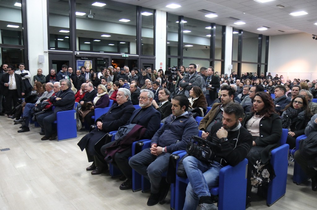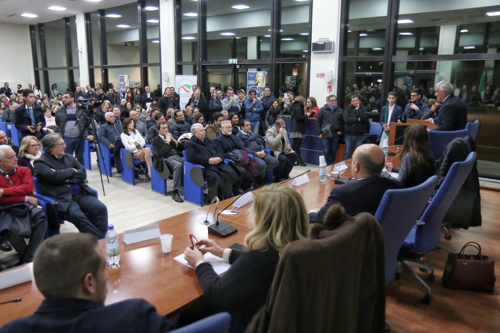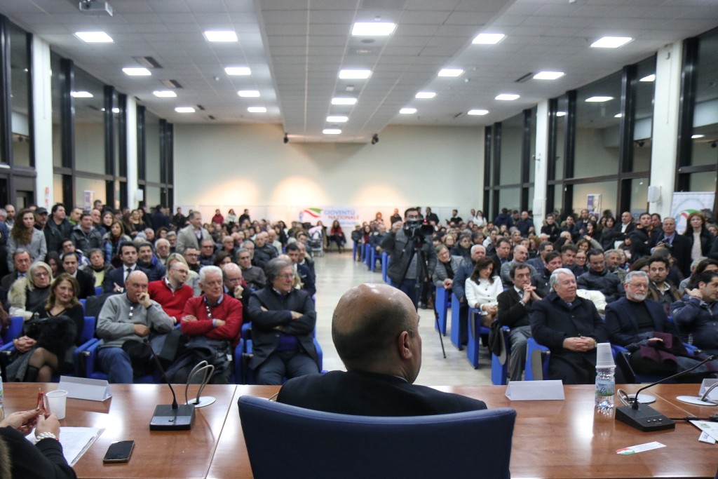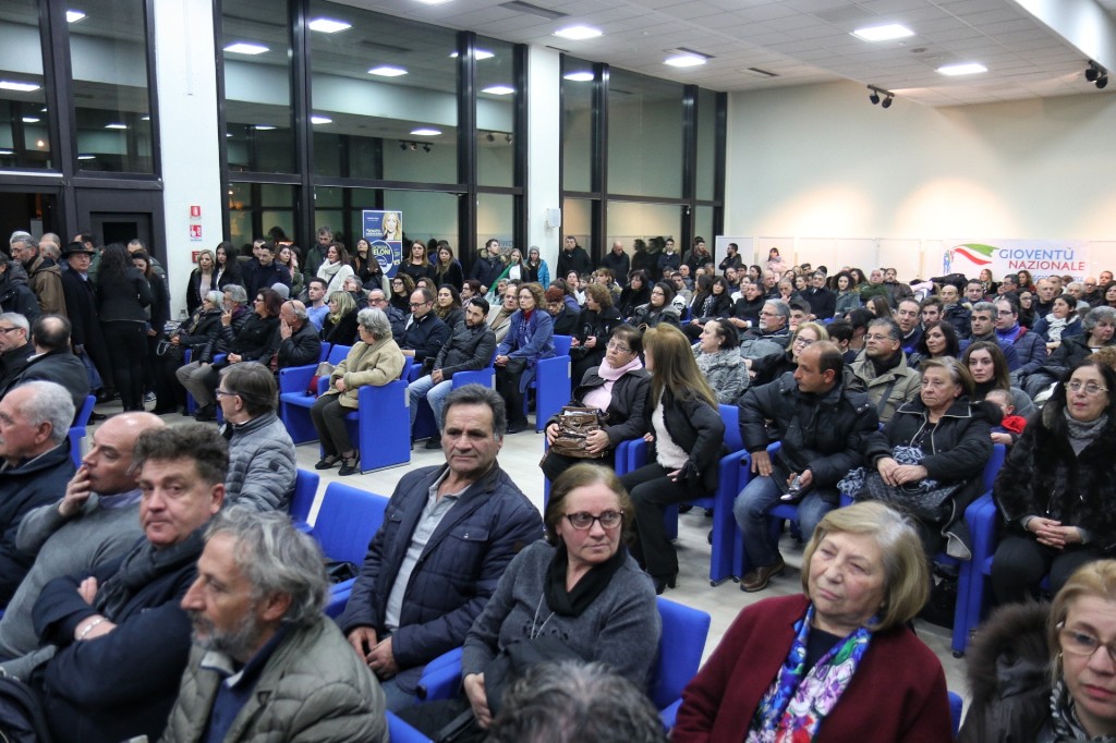 Infine l’atteso intervento di Isabella Rauti: “Ringrazio Massimo che ha toccato il cuore di tutti e i tantissimi qui presenti, nutro grande affetto per Renato Meduri e Nello Scuderi. Sono legata al Sud perché mio padre è originario della Calabria. Approfitto di questo incontro per dire che le Carte di Pino Rauti sono state riconosciute di grande interesse storico e saranno donate alla Biblioteca Nazionale. È un riconoscimento a mio padre e a ciò che la destra ha rappresentato in Italia. Noi veniamo dal Movimento Sociale Italiano che nel 1946 alcune persone misero in piedi quando tutto sembrava finito. Abbiamo le idee dei nostri padri, un patrimonio intellettuale, culturale e valoriale, ma non siamo nostalgici, queste idee devono essere rielaborate alla luce del progresso storico.” Su questo ragionamento un affondo a chi in Italia “cavalca la paura, chi lo fa si accolla una responsabilità grave perchè alimenta la caccia alle streghe. Dobbiamo parlare dei fenomeni reali, non delle strumentalizzazioni. Il fenomeno fascista sta nel corteo che proprio nel giorno in ricordo delle vittime delle foibe inneggia ad una pagina buia della nostra storia!” E ancora: “Rappresentiamo un polo identitario con l’Italia nel cuore, contro tutte le minacce e senza strumentalizzazioni, dobbiamo uscire dal pantano, dal ristagno creato da chi è rimasto attaccato alla poltrona fino all’ultimo giorno senza dignità! I grillini sono metà giacobini e metà anarchici, a ciò si è affiancata negli ultimi anni l’ipocrisia del governo PD. C’è invece nel nostro Paese e nel nostro partito il capitale umano e valoriale per disegnare un nuovo futuro! La legge elettorale ci obbliga alle coalizioni: se come anticipato dai sondaggi arriveremo al 40% potremo dare finalmente stabilità al nostro paese. Abbiamo assistito ad una deriva dello stato e ad un governo che abdica alle sue funzioni fondamentali per impedire ai cittadini di andare al voto. Dobbiamo trasformare la rabbia in progetti, progetti che i grillini non hanno: non si vota per suggestione ma per convinzione!”