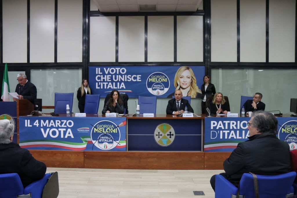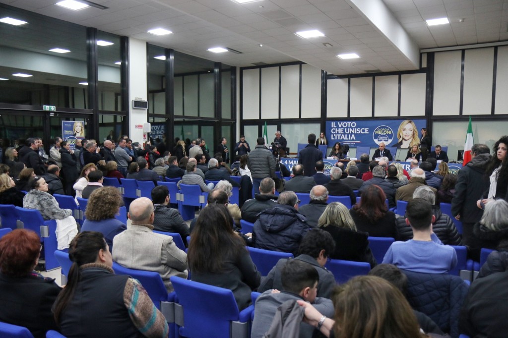 Spazio poi al giovane Pasquale Oronzio, membro dell’Esecutivo nazionale di Gioventù Nazionale: “Sono emozionato ed orgoglioso perché Fratelli d’Italia ha la schiena dritta e ha premiato meritocraticamente il lavoro svolto sui territori, proprio la candidatura di Massimo è la vittoria di un intero gruppo. Il nostro è un partito che ha posto al centro del suo programma un ingente piano della natalità e la difesa della famiglia, incentivi al lavoro e un sistema universitario che premia il merito senza test-lotteria.” E non è mancato l’affondo sui recenti fatti di cronaca: “Hanno riportato alla ribalta un tema ormai anacronistico come quello del fascismo, ma intanto nei cortei si è inneggiato alle foibe. È vergognoso!” A seguire la terza candidata nel listino proporzionale, Alessandra Polimeno, che ha enfatizzato la presenza di tantissime donne in posizione di leadership all’interno del partito: “Giorgia Meloni è una grande donna che ha saputo dare fiducia e continuità ai territori, un legame imprescindibile tra cittadini e politica. Inoltre la sua “ricetta” in 15 punti è un programma chiaro e coerente con quanto detto fino ad oggi su famiglia e politiche sociali; il piano pluriennale punterà alle infrastrutture in modo da consentire una crescita nazionale non in ottica “meridionalista. Bisogna far capire che il voto deve nascere da considerazioni e programmi, il nostro non è un libro dei sogni. Concretezza è dare il voto a Fratelli d’Italia.” E sul pericolo islamizzazione: “Non siamo razzisti, vogliamo che chi arriva qui rispetti la nostra storia e la nostra tradizione. Le comunità italiane raccomandano nei paesi islamici di rispettare leggi e cultura. Noi invece siamo addirittura “costretti” a difendere le nostre tradizioni.”