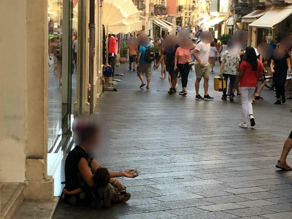 Chiedeva l’elemosina in strada insieme al figlioletto di tre anni: rumena denunciata a Taormina