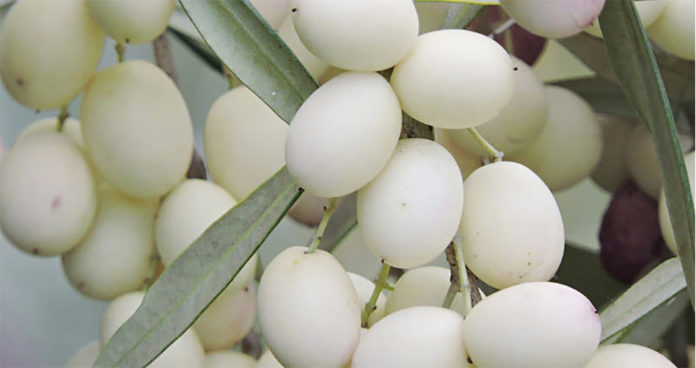 Il prodigioso “Olivo della Madonna” ovvero la Olea europaea var. leucocarpa, è una cultivar molto speciale che si fa riconoscere in tutta la sua straordinaria bellezza solo a partire dal momento della maturazione del frutto. Tra ottobre e novembre, quando tutte le altre olive passano dal verde al nero per effetto della degradazione della clorofilla, solo nelle drupe della variante leucocarpa al diminuire della clorofilla le olive cambiano il proprio colore dal verde al bianco latte (da cui il nome), arrivando così a rivelare, agli occhi delle genti di Calabria, tutto il loro straordinario potere evocativo.