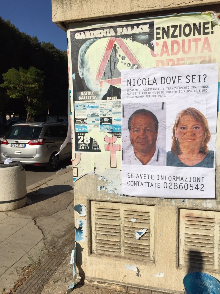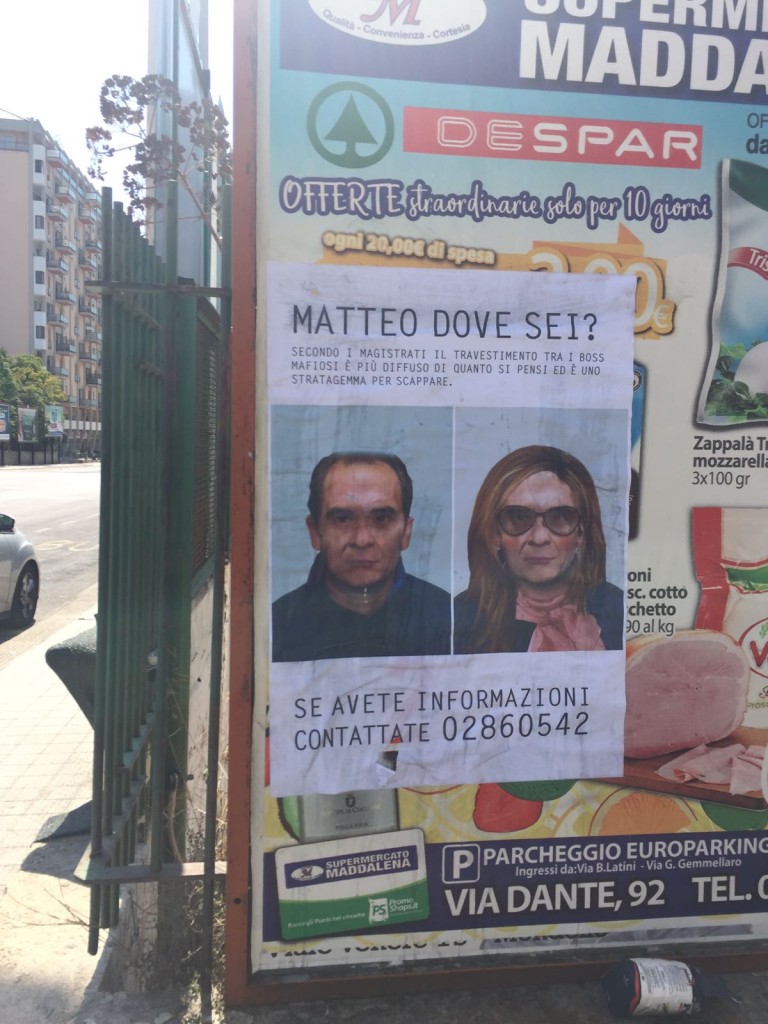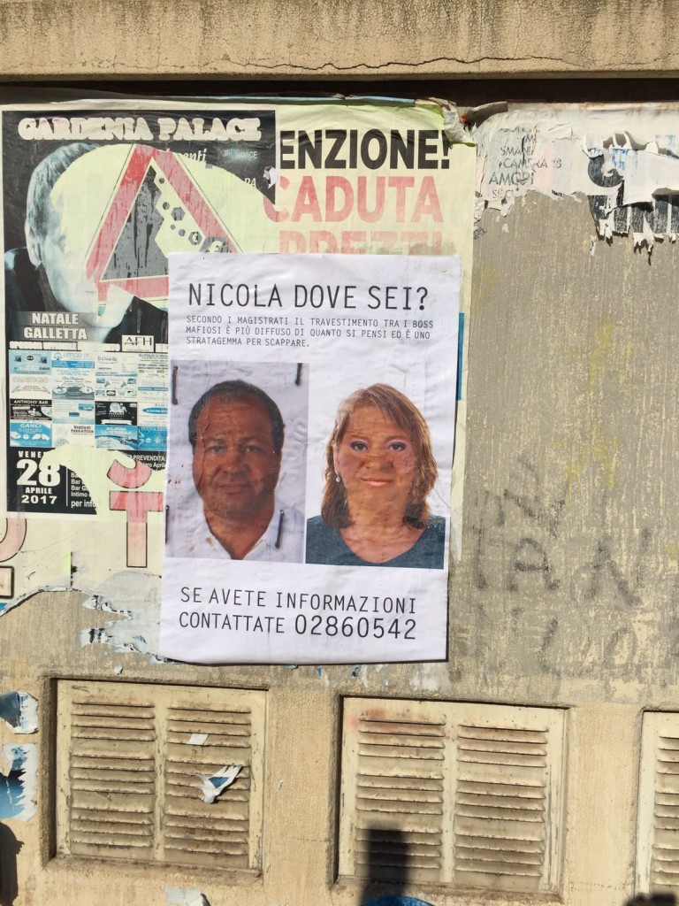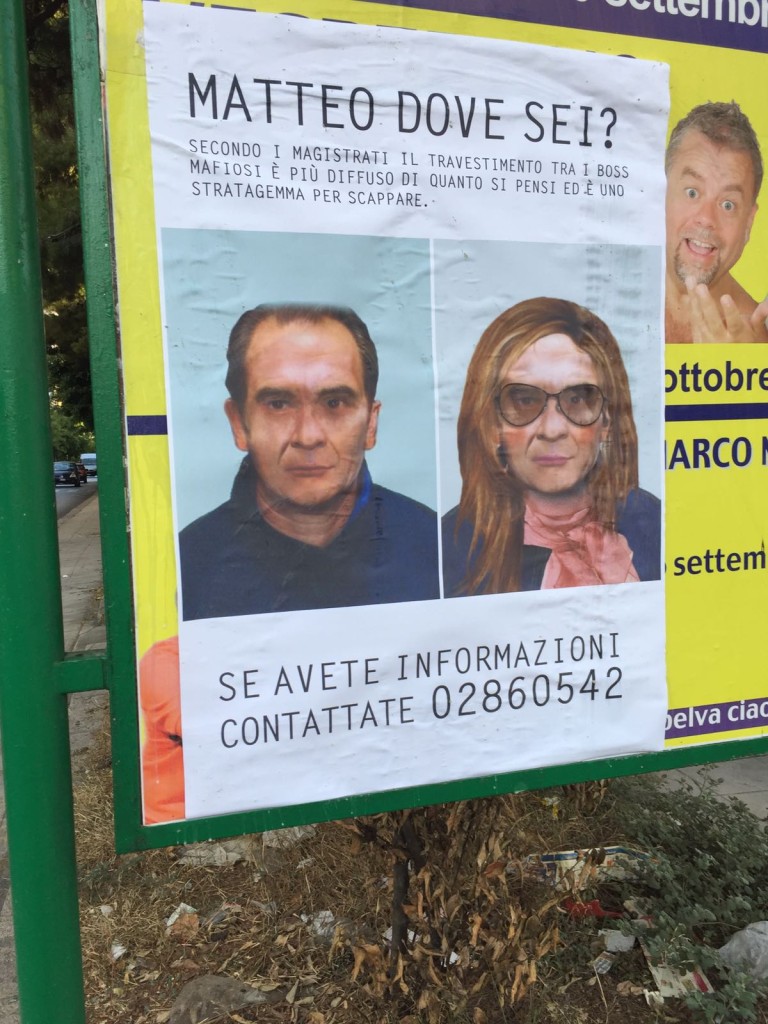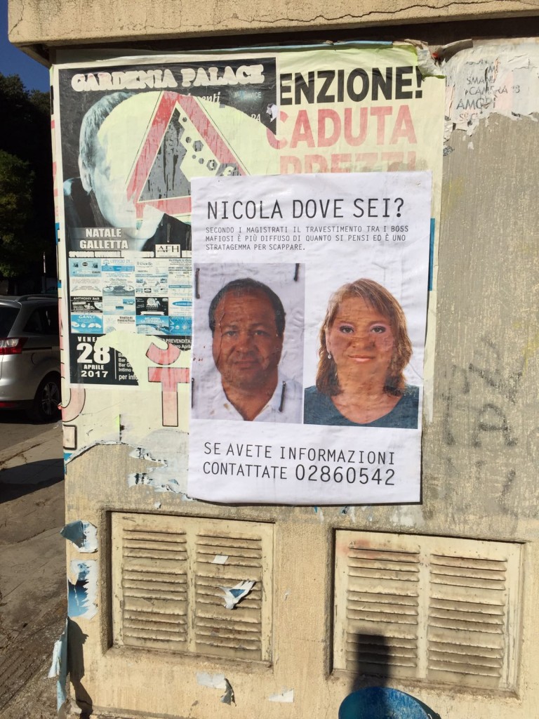 Dopo Reggio Calabria, Milano ora tocca a Palermo. Il capoluogo di regione siciliano è stato invaso da circa 70 poster raffiguranti il capo dei capi della mafia in abiti femminili. Non solo lui. In vari quartieri della città siciliana si possono vedere i poster di altri due boss della ‘Ndrangheta cioé Rocco Morabito, latitante dal oltre 25 anni probabilmente riparato in Brasile, e Nicola Assisi uno dei più potenti e pericoloso narcos a livello internazionale e introvabile da anni. I poster sono visibili in vari quartieri di Palermo tra cui il celebre Zen, la zona di Via d’Amelio, la Zona del Porto, le strade che costeggiano l’ingresso dell’autostrada, il Centro storico. Autori della campagna Klaus Davi giornalista e massmediologo e il pluripremiato pubblicitario Pasquale Diaferia.