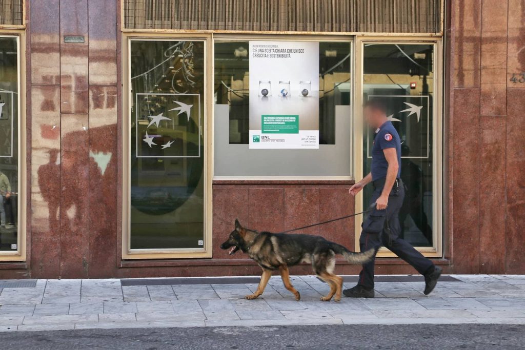 AGGIORNAMENTO ORE 11:00 – Sono entrati proprio in questi minuti alla BNL i cani anti-esplosivo. Sono state attivate le squadre antiterrorismo delle API – “Aliquote di primo intervento” dei Carabinieri.
