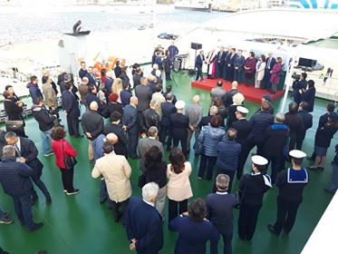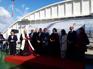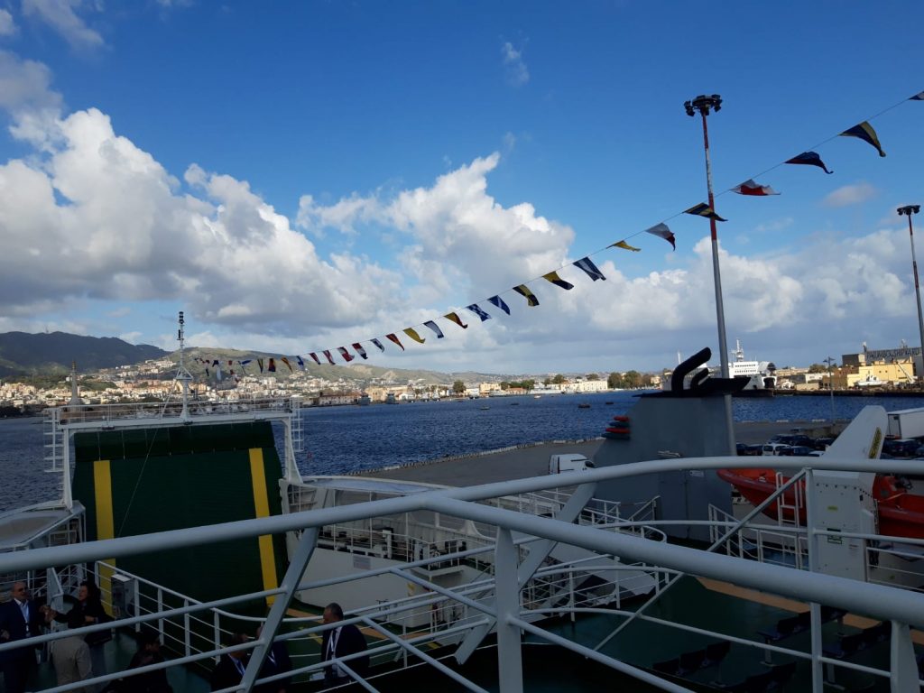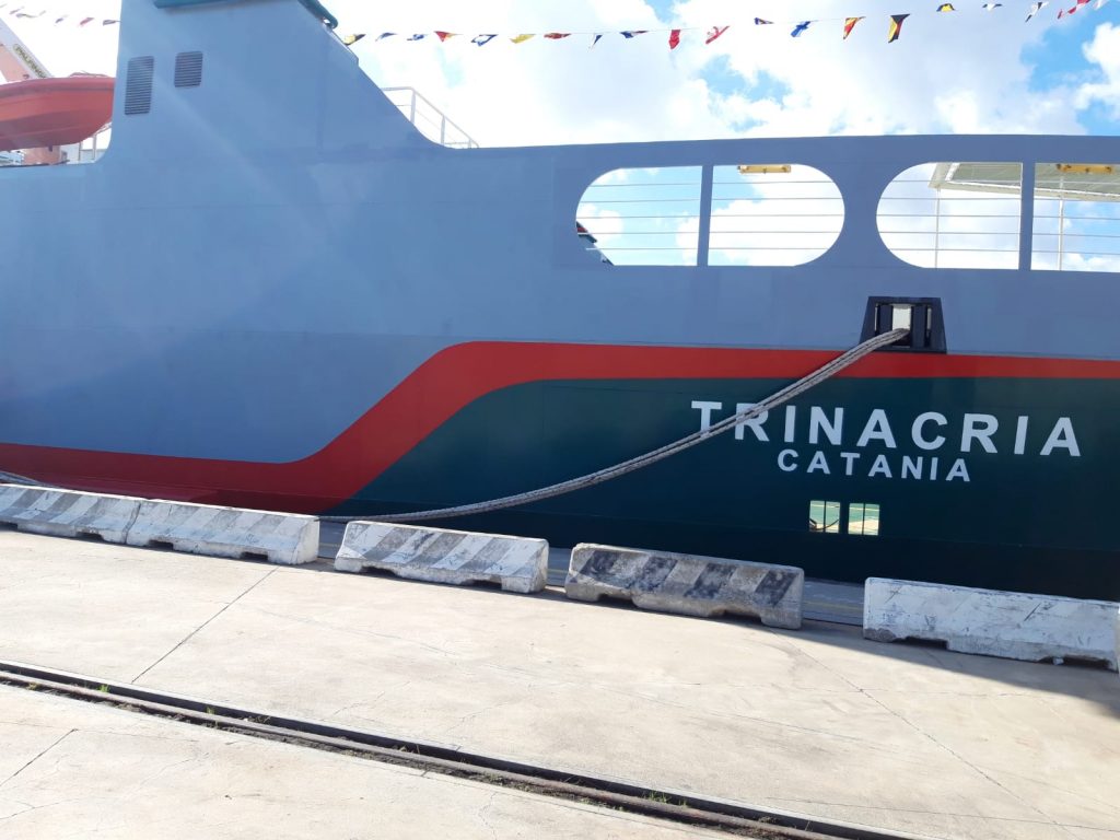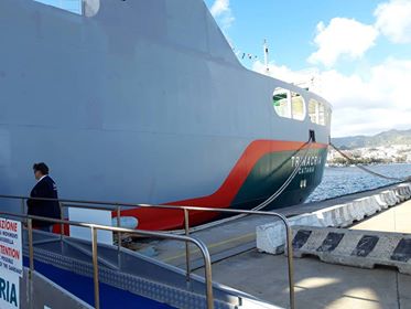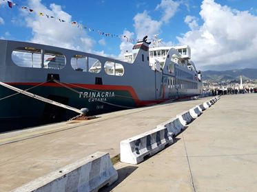 Al Molo Norimberga è stato inaugurata “Trinacria”, la nuova motonave di Bluferries, la società controllata di Rete Ferroviaria Italiana. Trinacria farà la spola tra Messina a Villa e San Giovanni: è lunga 104 metri e larga 18 e sarà operativa dal prossimo dicembre.