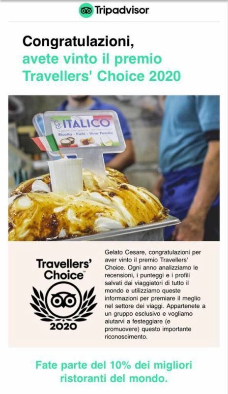 Si chiama “Travellers’ Choice Best of the Best”, è il premio che Tripadvisor utilizza per congratularsi con le aziende registrate sul portale che occupano i primi posti della classifica delle preferenze degli utenti. Quest’anno insignito del titolo anche Gelato Cesare, chioschetto verde vanto nel mondo per la città di Reggio Calabria. L’azienda statunitense ogni anno analizza tutte le recensioni, i punteggi e i luoghi salvati che i viaggiatori condividono in tutto il mondo per riconoscere le strutture migliori in assoluto. Adesso dunque anche Gelato Cesare fa parte del 10% dei locali migliori del territorio nazionale.