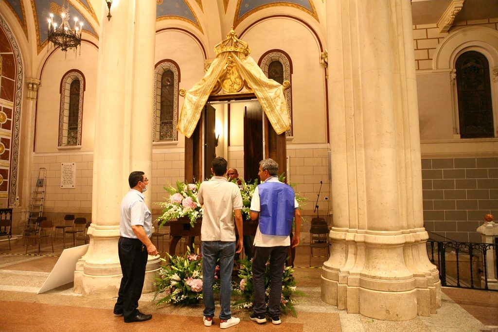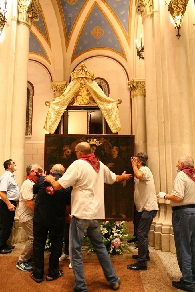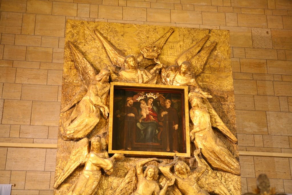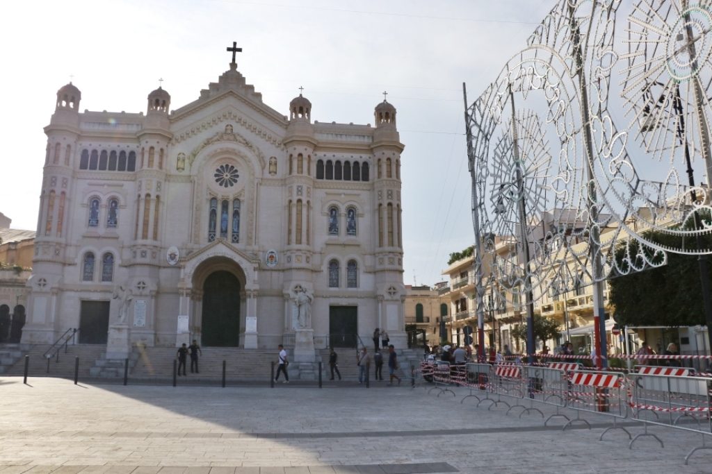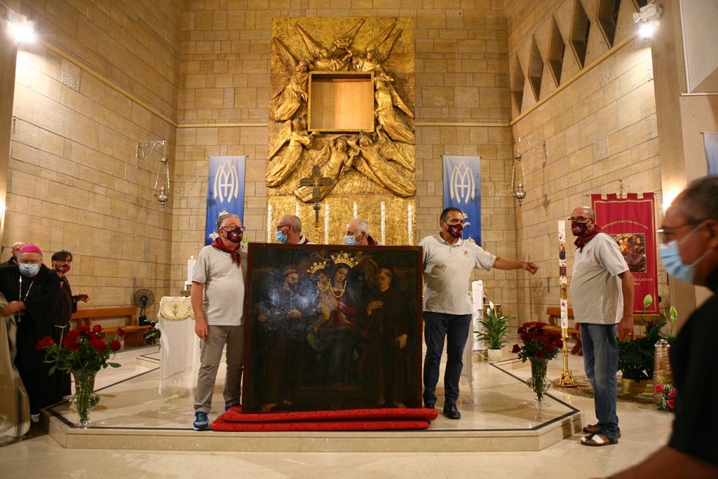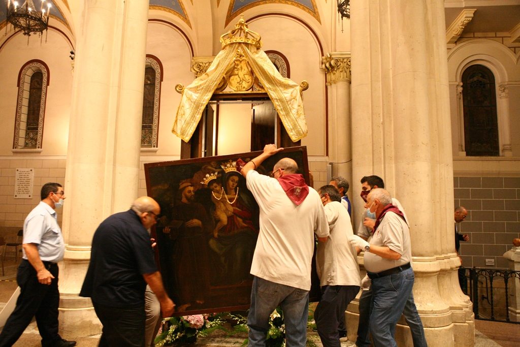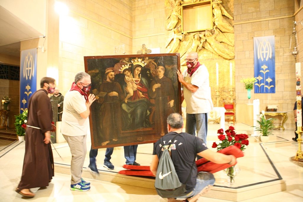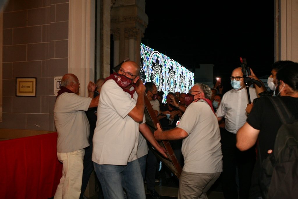 Adesso il quadro della Madonna – per la prima volta dopo il restauro – è esposto al Duomo. La il portone della chiesa è chiuso, la piazza è off-limits con un lunghissimo cordone di transenne per una coda che neanche agli Uffizi di Firenze. La piazza è letteralmente militarizzata: chiusi tutti i varchi, controlli stringenti. Il tutto per evitare folle e assembramenti.