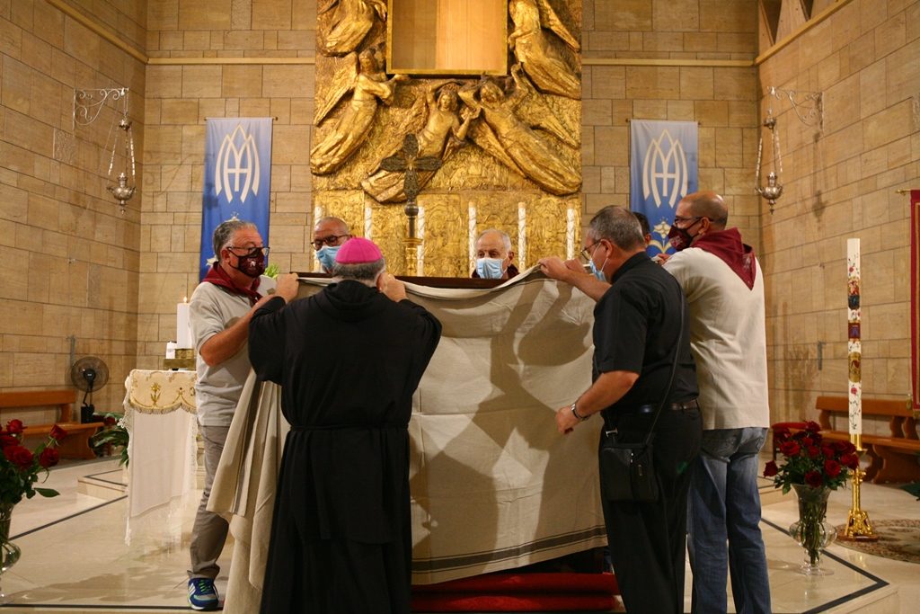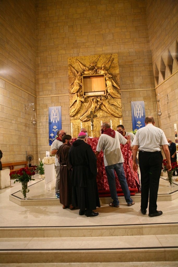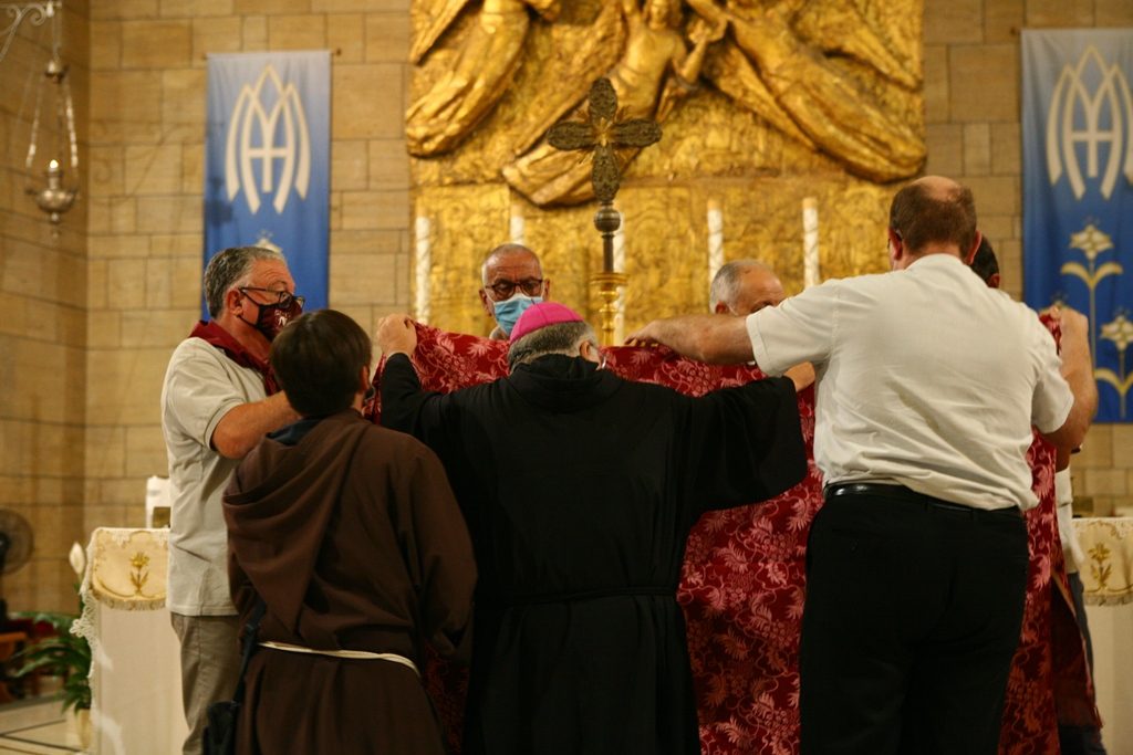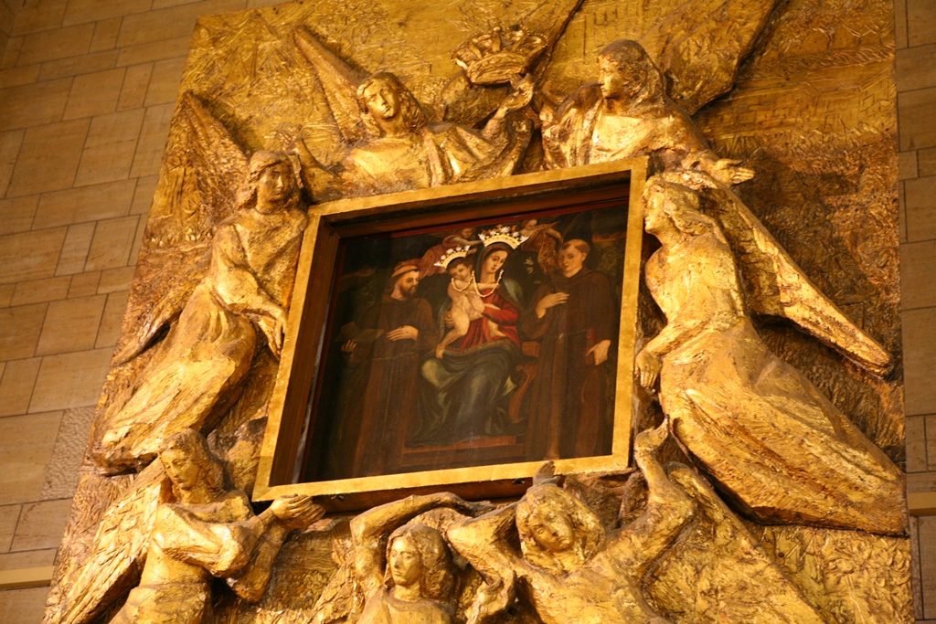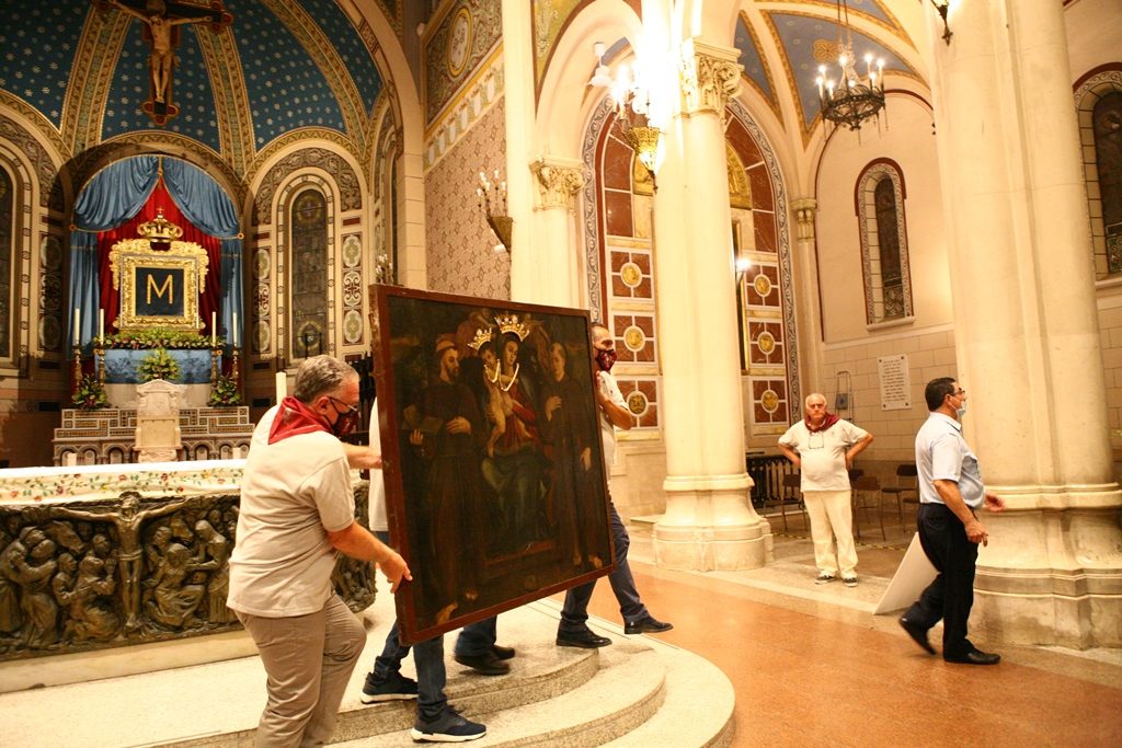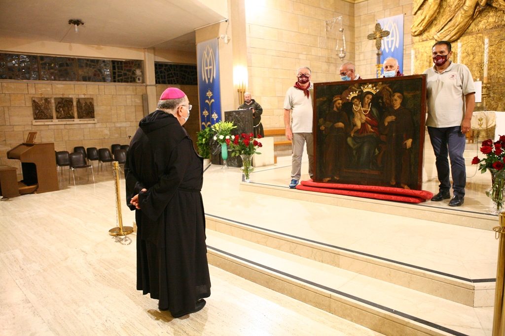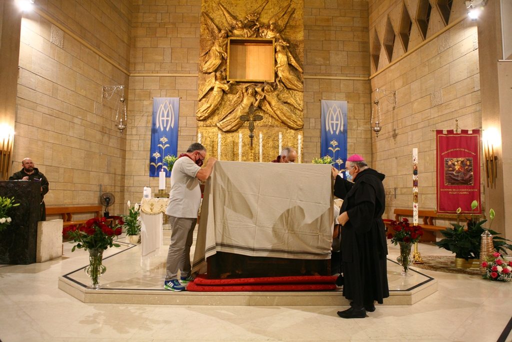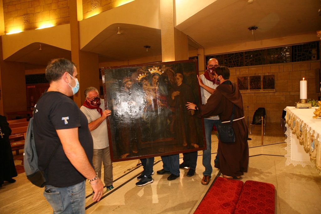 Adesso il quadro della Madonna – per la prima volta dopo il restauro – è esposto al Duomo. La il portone della chiesa è chiuso, la piazza è off-limits con un lunghissimo cordone di transenne per una coda che neanche agli Uffizi di Firenze. La piazza è letteralmente militarizzata: chiusi tutti i varchi, controlli stringenti. Il tutto per evitare folle e assembramenti.