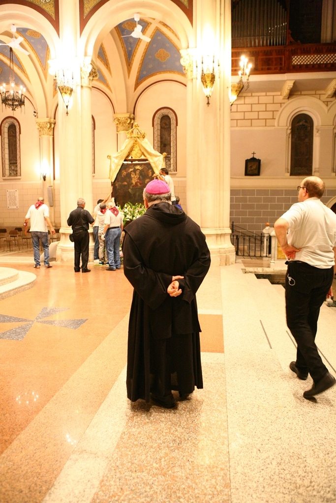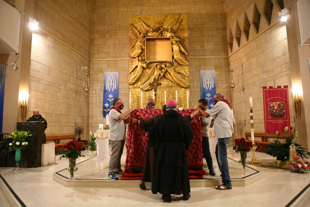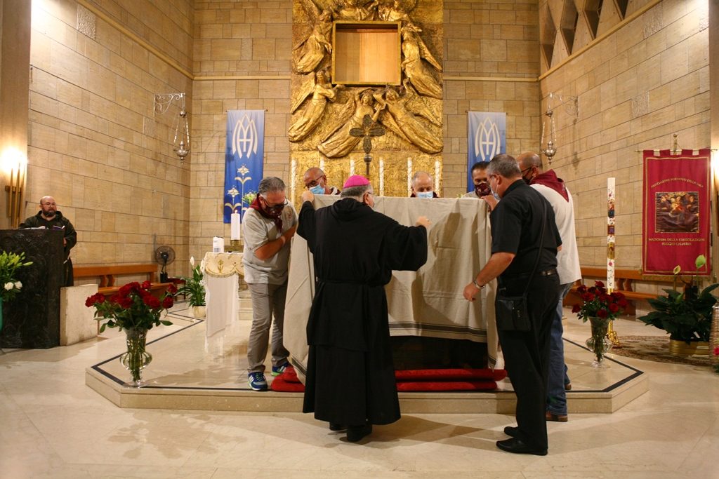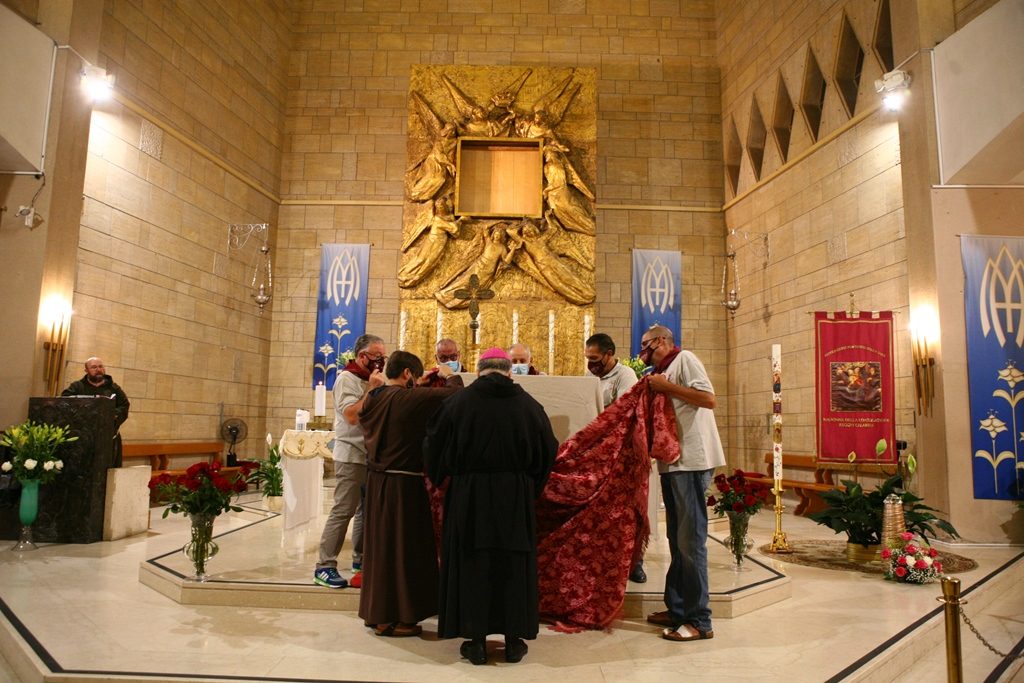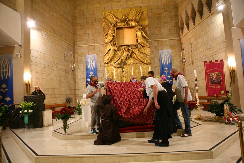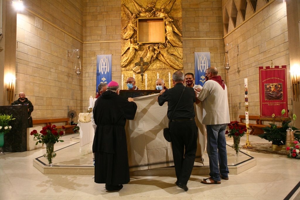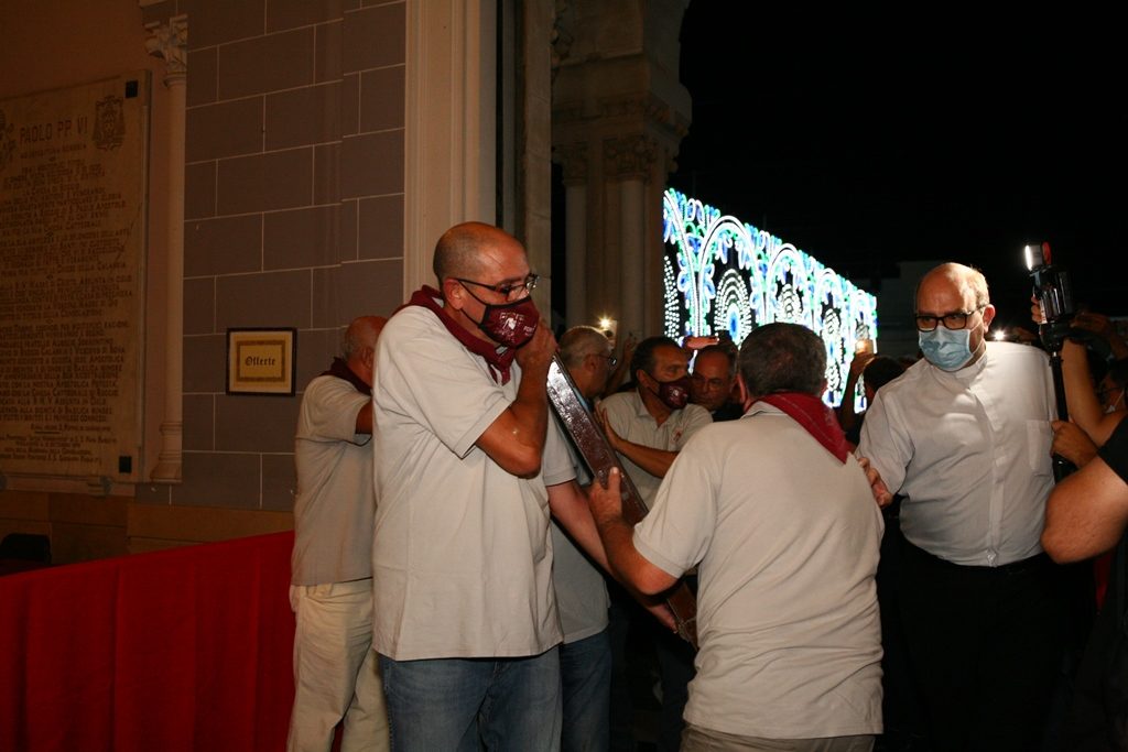 Scene da guerra a Reggio Calabria. Camionette della polizia, agenti e militari ovunque intorno piazza Duomo. La versione-Covid di Festa di Madonna è la più inedita della storia, senza processione per evitare folle e assembramenti. “Non stiamo umiliando i fedeli come dice qualcuno” ha detto l’Arcivescovo Giuseppe Fiorini Morosini, “stiamo soltanto tutelando la salute pubblica“. E allora hanno sfilato il Quadro della Madonna della Consolazione dalla sua postazione dell’Eremo e l’hanno avvolto nelle coperte, caricato su un furgone e trasferito al Duomo alle tre di notte. Letteralmente trafugato in un orario ignoto della tarda notte per tenere lontana la gente, se non fosse che il mezzo era dei Vigili del Fuoco e che comunque un po’ di fedeli si erano radunati fuori dall’Eremo aspettando tutta la notte il fatidico momento (vedi fotogallery scorrevole in alto, a corredo dell’articolo).
