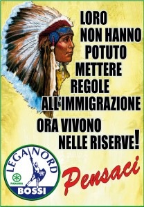 - Immigrazione e sicurezza. Una volta si metteva una bottiglia in mare e si aspettava che arrivasse la risposta. Adesso si mettono i gommoni in mare senza far arrivare domanda al Comune. Questo la Lega non lo permette e sul suo sito ricorda come gli Indiani d’America, che hanno “subito l’immigrazione”, “ora vivono nelle Riserve”.