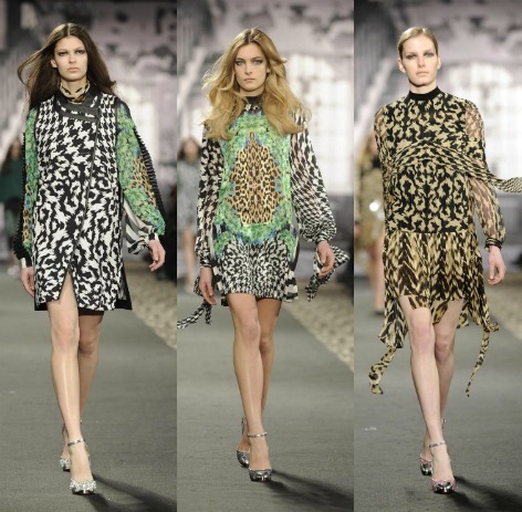 La collezione presentata in passerella è ricoperta da svariati tocchi maculati, e non solo. Cavalli riesce a rinnovare il suo stile attraverso un uso nuovo della stampa animalier, mescolandola a stampe più classiche come il pied-de-poule o il principe di galles, arrivando a creare un disegno affascinante. Su abiti e cappotti le fantasie si mescolano, la pelle nera si unisce al cavallino a stampa maculata, minidress leopardati sono esaltati da macro paillettes trasparenti.