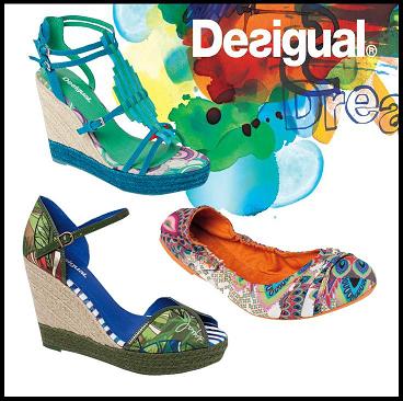 Fra le grandi protagoniste per la bella stagione ci sono le scarpe: la linea Desigual Shoes! è assolutamente ‘loca’, con modelli che seducono per la loro bellezza. Righe navy, fiori tropicali e tutte le stampe più assurde e particolari – dall’optical alla psichedelia-floreale – tornano in Desigual Shoes! Non manca neppure un omaggio all’Africa, con variopinte fantasie geometriche e motivi etnici ispirati ai tatuaggi all’henné e ai colori dei sensuali paesaggi tropicali.