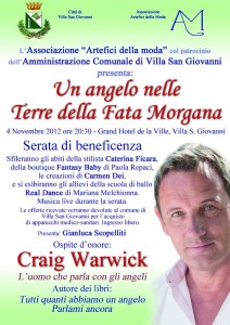 “Un angelo nelle Terre della Fata Morgana”. L’ingresso è libero ed il ricavato della serata sarà devoluto per l’acquisto di apparecchiature medico-sanitarie da destinare al settore sociale del Comune di Villa San Giovanni (RC).