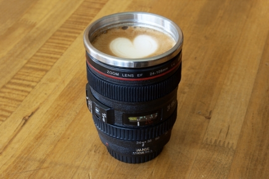 Chi non ha un amico appassionato di fotografia? Ecco il regalo adatto! Ha le ghiere rotanti e l’interruttore dell’autofocus, ma non fa fotografie. La Camera Lens Mug è una tazza che riproduce nei minimi dettagli l’obiettivo si una reflex Canon. Realizzata in acciaio inossidabile per mantenere caldo il caffè. In bianco o nero, la trovate su www.photojojo.com rispettivamente a 30 e 24 dollari (23 e 18 euro)