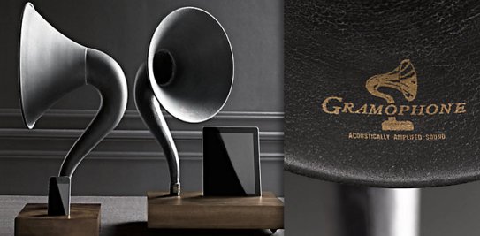 Un regalo davvero elegante per gli appassionati di musica. Il grammofono è realizzato a mano in legno di noce con finiture in ferro e ottone, si può utilizzare ovunque senza corrente o batterie. Lo trovate su www.restorationhardware.com rispettivamente a 249 e 299 dollari (190 e 230 euro)
