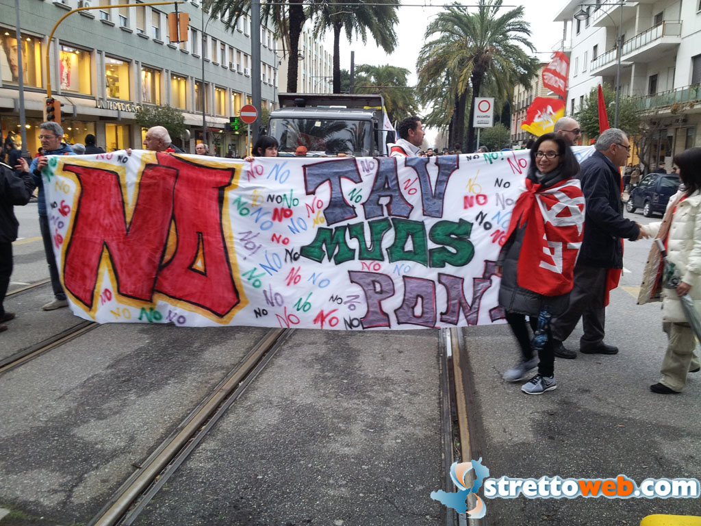 Insieme al corteo dei No Ponte hanno sfilato gli attivisti della Val di Susa, i No Muos, ed il coordinamento No al Rigassifigatore della Piana di Gioia Tauro. Tutti i manifestanti si sono stretti intorno ad un unico grido “il territorio è patrimonio dei cittadini che vi abitano, no alla speculazione”.