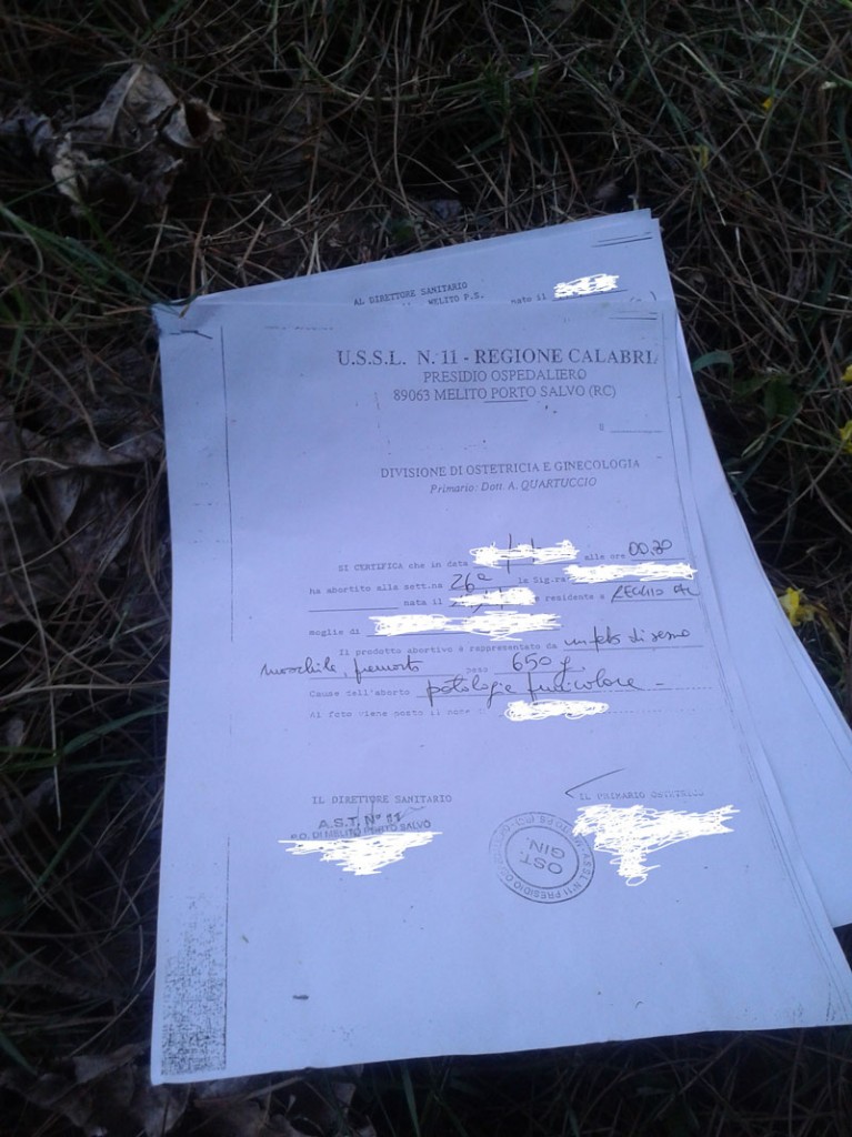 L’hanno chiamata “operazione decoro”. Si tratta della pulizia all’esterno dell’ospedale di Melito Porto Salvo. Decoro, dal latino “decor o decus” (ornamento, dignità) è, quindi, ciò che si vorrebbe dare all’ospedale, un tempo prestigio e risorsa del territorio, divenuto successivamente un “postificio” e “carrierificio” per tantissima gente. Purtroppo, però, non basta ripulirlo dalle erbacce all’esterno per ridargli la dignità perduta. Sconcertante è ciò che ho visto e fotografato qualche giorno fa, avvicinandomi alla camera mortuaria, da tempo sequestrata con provvedimento dell’autorità giudiziaria e i cui sigilli sono stati rimossi da ignoti. L’effrazione, che sembra essere stata denunciata alle forze dell’ordine, alla data del 10/04/2013, risultava alla vista qualcosa di indecoroso e squallidamente vergognoso. L’area non è recintata, la porta d’ingresso regolarmente spalancata, e tutti vi possono accedere, con gravi rischi per la propria salute e la propria incolumità fisica, essendo un edificio pericolante nella sua struttura. All’interno, oltre la sporcizia, le siringhe, gli escrementi di animali, cartelle cliniche che riportano dati sensibili di pazienti che hanno svolto cure mediche presso l’ospedale. Ad aggravare la situazione, fuori, sparsi a terra, nel prato accanto all’edificio, si trovano, alla mercè di tutti, cartelle cliniche, che riportano i dati di donne che hanno avuto necessità di pratiche abortive presso l’Ospedale di Melito Porto Salvo: i loro dati anagrafici e l’indirizzo di residenza possono essere noti a chiunque, come da foto allegate. Auspico che le autorità competenti intervengano con la massima urgenza per tutelare l’incolumità fisica (bambini potrebbero entrare nell’edificio) e la privacy dei cittadini sottoposti a cure mediche.