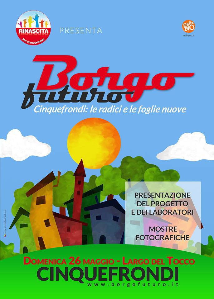 Pensiamoche ci siano tanti nodi da sciogliere. Pensiamo che “Borgo Futuro”è un lungo processo di partecipazione e di condivisione capace diriuscire a rispondere a tutti questi quesiti. Capace di ridare alleradici quel compito di ancoramento con la Storia, ma che le foglienuove passano solo dalle nostre storie, dalle nostre scelte. Unlaboratorio prevede scambio, crescita e la volontà di processicapaci di portare al cambiamento. Rinascita per Cinquefrondi vuoleprovare a creare un dialogo con i quartieri nel tentativo di renderenuovamente protagonista la cittadinanza.