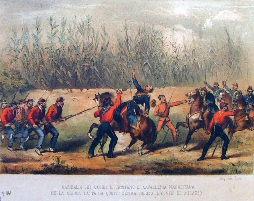 Da qui le truppe di Bosco ripiegarono di qualche centinaio di metri, fino alla Tonnara. Qui ancora altri garibaldini si resero protagonisti: alcuni fecero da scudi umani per proteggere un prezioso cannone appena conquistato, altri, come Missori e Statella, difesero con coraggio Garibaldi, trovatosi appiedato e circondato dalla cavalleria nemica. Il Generale infatti, insieme ai suoi uomini, si ritrova ad affrontare una temibile carica borbonica, guidata dal capitano Giuliani. Proprio questi affronta, forte del suo destriero, Garibaldi, tentando di colpirlo con una sciabolata. Desto però l’eroe di Nizza si scansa e con la punta della sua lama taglia la gola al nemico.