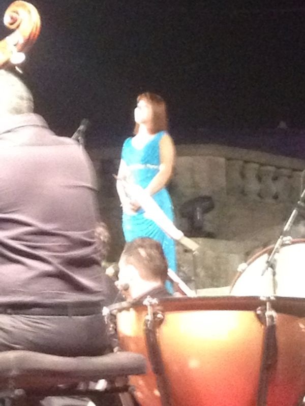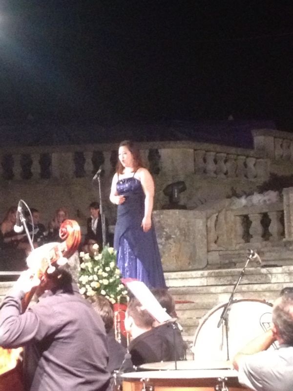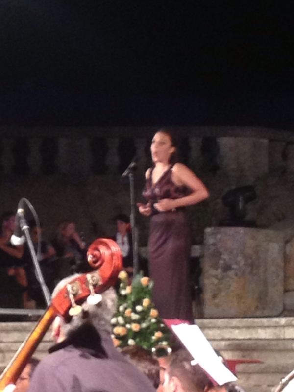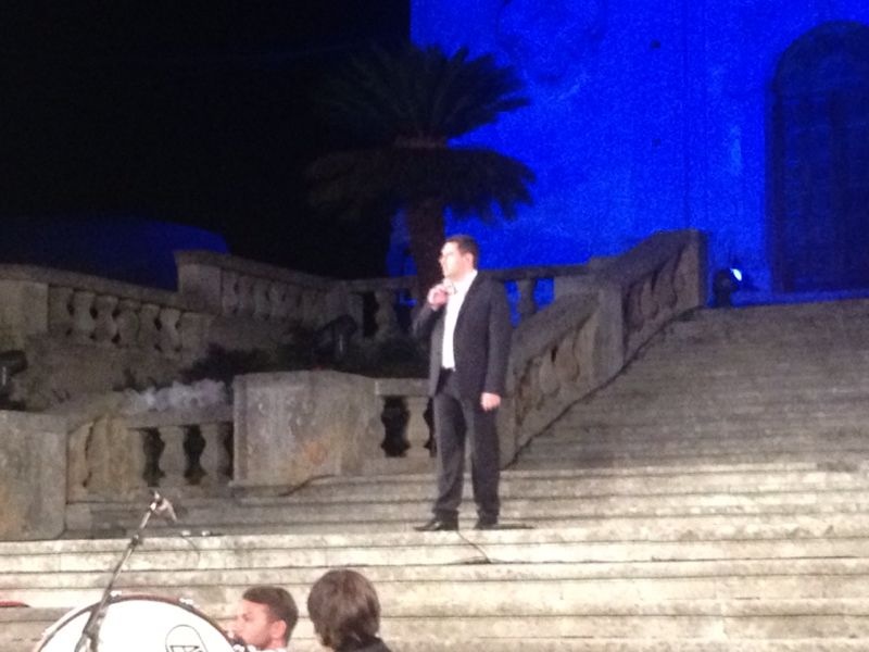 Si è passati poi alla premiazione di due bellissime voci femminili dalla Cina, un soprano ed un mezzo-soprano, al terzo posto ex aequo al concorso “Leoncavallo”, che si son esibite, ambedue in maniera particolarmente mirabile nell’esecuzione, rispettivamente il mezzo-soprano nell’aria “Cruda sorte, amor tiranno” dall’”Italiana in Algeri” di G. Rossini, ed il soprano nell’aria “Tacea la notte placida” dal “Trovatore” di G. Verdi; in ambedue è stata molto apprezzabile la pronuncia, il fraseggio e, in toto, la bellissima interpretazione. Ci è stato poi un bellissimo ringraziamento fatto da parte dell’assessore alla politica ed allo spettacolo del comune di Montalto Uffugo, Eugenio Ingribelli, che ci ha tenuto a ringraziare in particolare tutti coloro che hanno permesso ed hanno preso parte a questa splendida serata. E’ giunta poi un’altra ospite della serata, il soprano Mariangela Sicilia, che si è esibita con notevole bravura nell’aria “Caro nome” dal “Rigoletto” di G. Verdi; altro ospite della serata, ha fatto poi comparsa il tenore Micheal Spadaccini che, senza tuttavia eseguire un’esibizione mirabile, ha cantato l’aria “Oh tu, che in seno agli angeli” dalla “Forza del destino” di G. Verdi. Ha fatto poi tuttavia comparsa il mirabile soprano, secondo posto al concorso “Leoncavallo”, che si è esibita soavemente nell’aria “Regnava nel silenzio” (con la bellissima caballetta “Quando rapito in estasi) dalla “Lucia di Lammermoor” di G. Donizetti, con un’esibizione, senza dubbio, di altissimi livelli. Abbiamo poi avuto il baritono ospite della serata Carlo Guelfi che ha eseguito il Prologo “Si può? Si può?” dai “Pagliacci” di R. Leoncavallo con un bellissimo sfondo di tendone da circo proiettato sulla facciata della Chiesa, e con dei giovani ballerini vestiti da pagliacci a lui dintorno; in quanto all’esibizione, è stata bella, ma non di spicco. Abbiamo tuttavia poi avuto una esibizione a dir poco sublime, da parte della vincitrice del concorso “Leoncavallo”, un soave soprano di coloratura che si è esibito nell’ ”aria della bambola” “Les oiseaux dans la charmille” da “Les Contes d’Hoffmann” di J. Offenbach, nella quale ha dimostrato un fraseggio ed una pronuncia a dir poco sublime. Abbiamo poi avuto, dal terzo atto dell’”Aida” di G. Verdi, il soprano Adriana Damato ed il baritono Carlo Guelfi con il celebre duetto “Cielo, mio padre”, bello ma non dello stesso livello delle altre rappresentazioni della serata. Si è poi esibito in maniera a dir poco sublime il tenore Francesco Anile nell’aria “Vesti la giubba” dai “Pagliacci” di R. Leoncavallo, con un plauso del pubblico più che meritato e forse anche ridotto rispetto all’immensa bravura di questo immenso tenore. E’ poi tornato Micheal Spadaccini che, nella “Mattinata” di R. Leoncavallo ha dato notevole prova di sé; gran finale poi: coro e tutti i solisti in scena a cantare il celeberrimo “Brindisi” “Libiamo ne’ lieti calici” dalla “Traviata” di G. Verdi, successivamente al quale ci sono stati i bellissimi, lunghi e particolarissimi fuochi d’artificio finali, che hanno posto fine alla serata.
