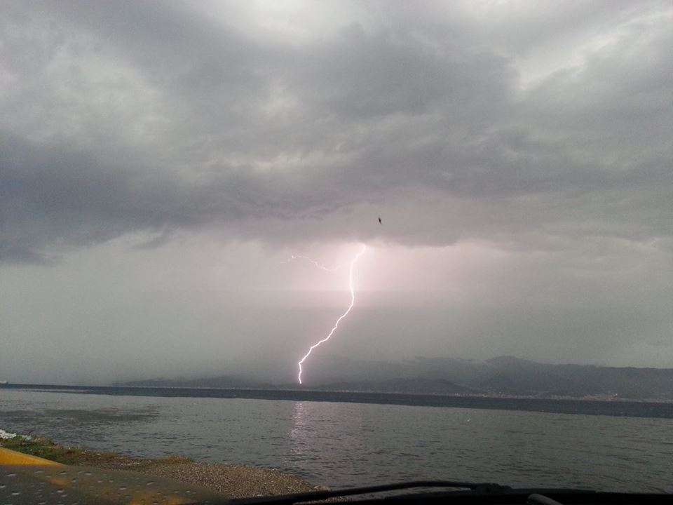 Vi proponiamo alcune spettacolari immagini scattate dal nostro lettore Igor Martino. Fulmini, pioggia e grandine stanno investendo in queste ore lo Stretto di Messina sia sulla sponda calabrese che su quella siciliana. Nel messinese ionico una violenta grandinata ha causato notevoli danni, distruggendo decine di parabrezza di automobili e provocando il panico lungo la statale 114. Le foto che vedete sono state catturate da Reggio Calabria.