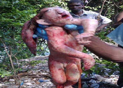 Alcuni cacciatori dell’Amazzonia, hanno catturato ed ucciso un animale con sembianze di essere umano. La foto, a sinistra, sta facendo il giro del mondo ed è veramente un orrore.