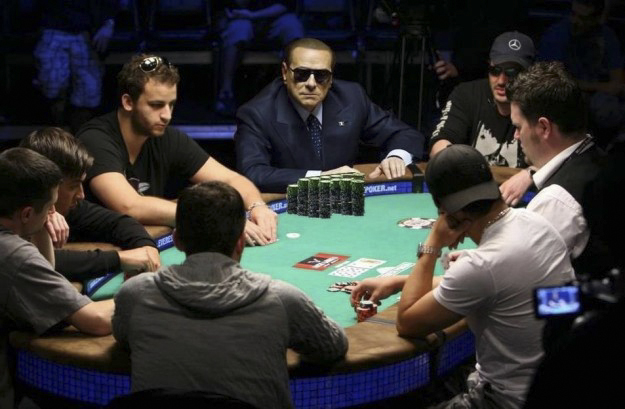 Il Cavaliere era raggiante, sicuro di vincere e stava già esultando, con un sorriso che gli arrivava fino alle grandi orecchie, quando l’altro scoprì una scala reale.