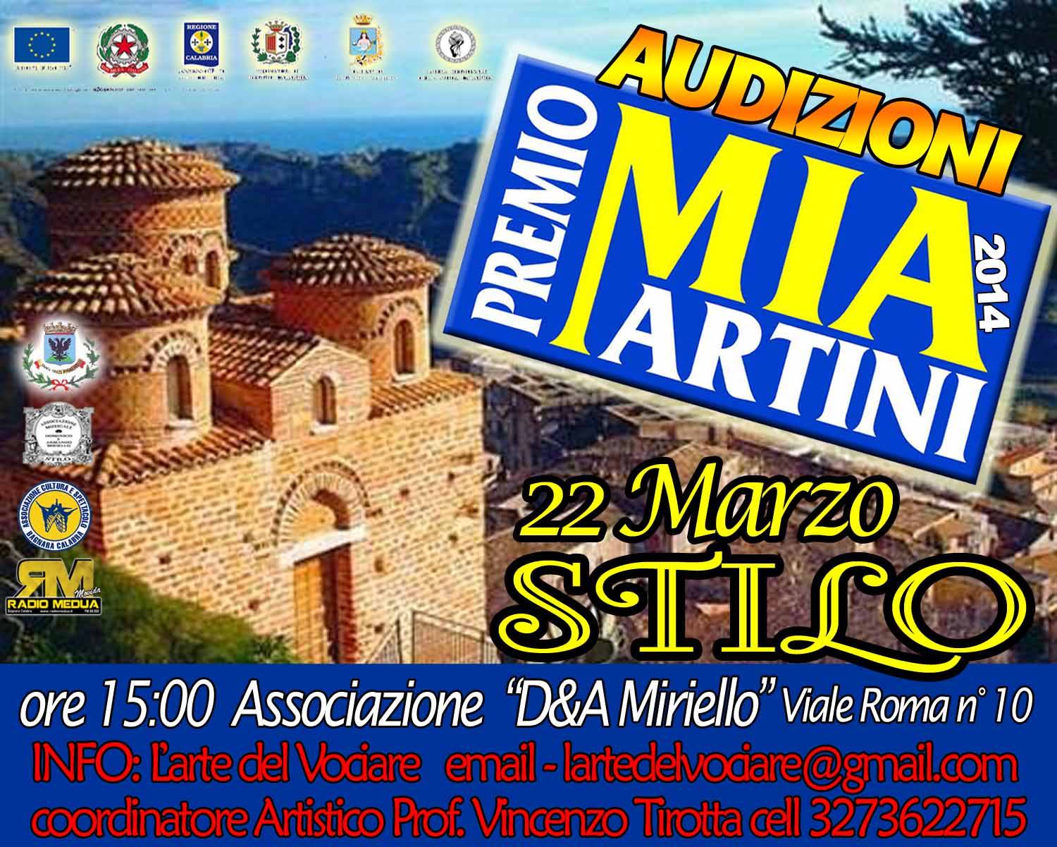 Stilo (RC), Sabato 22 Marzo 2014, ospiterà le audizioni del prestigioso premio, istituito dal regista Nino Romeo per ricordare la grande interprete della canzone Italiana Mia Martini, figlia di Calabria, l’evento giunto alla ventesima edizione ha lo scopo di promuovere la cultura della musica e del canto tra i giovani e nello stesso tempo valorizzare alcune località più suggestive del territorio calabrese. Le audizioni si svolgeranno presso l’Associazione “ D&A Miriello” sita in viale Roma n.10, con inizio alle ore 15,00. Posso partecipare: per la sezione “Nuove Proposte per l’Europa” 14/45 anni, per la sezione “Una Voce per Mimì” 04/13 anni. L’iniziativa voluta dall’ Arte del Vociare e dall’ associazione M&A Miriello sarà patrocinata dal comune di Stilo e vedrà arrivare nella cittadina della Cattolica, tantissimi giovani aspiranti cantanti per partecipare alle audizioni del prestigioso evento. Le informazioni per l’audizione di stilo potranno essere richieste: lartedelvociare@gmail.com oppure direttamente al coordinatore artistico dell’audizione di Stilo Prof. Vincenzo Tirotta tel. 327 362 2715. il premio mia martini è un iniziativa dell’Associazione Cultura e Spettacolo di Bagnara Calabra (RC), patrocinato: Unione Europea, Repubblica Italiana, Regione Calabria, Provincia di Reggio Calabria, Comune di Bagnara Calabra, evento cofinanziato con il contributo UE POR CALABRIA FESR 2007/2013 Asse V – Linea di intervento 5231. per ulteriori informazioni: www.premiomiamartini.it. La grande Mia Martini diceva: “Non c’è niente di grande in me, quando io possa cantare per voi…”.