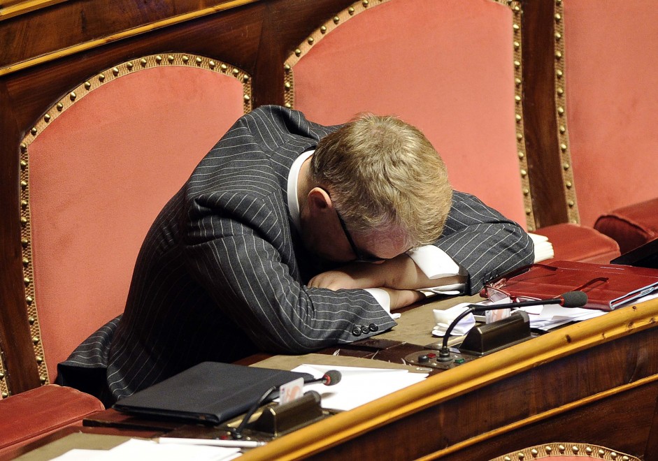Ieri il parlamento ha approvato il Def (Documento di Economia e Finanza): durante la discussione e il voto a Palazzo Madama (il Senato ha approvato il documento con 156 si, 92 no, e 2 astenuti), il senatore reggino del Nuovo Centro/Destra, Nico D’Ascola, ha mostrato evidenti segnali di stanchezza finchè poi non s’è accasciato sul bancone con tanto di occhiali da sole, vinto dal dio Morfeo. Non è certo il primo parlamentare che si addormenta sullo scranno, nè sarà l’ultimo (eclatante l’episodio del grillino Vito Crimi)…