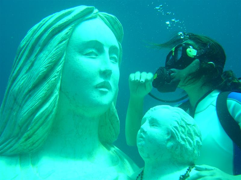 Dal 20 Luglio 2012, la Statua è posizionata a 13 metri di profondità nel fondale antistante Baia Cornino . Per le sue dimensioni (5 metri di altezza ed un peso di 10 tonnellate) è la Statua più grande raffigurante Maria in tutto il Mar Mediterraneo.