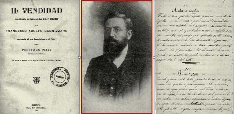 Figura meno nota di quella del padre – il poeta Tommaso Cannizzaro – ma non per questo meno interessante, Franz (Francesco Adolfo) nacque nel 1867 a Messina e vi morì nel 1914: un’esistenza breve, attraversata dal sisma del 1908 e connotata da tanti interessi e dal forte impegno civile. Grazie ai suoi lavori sulla letteratura persiana e alla sua traduzione italiana – la prima in assoluto – del Vendidad, testo fondamentale dello Zoroastrismo, venne apprezzato come orientalista e filologo. Ma fu anche socialista militante, assessore alla pubblica istruzione nella sindacatura di Antonio Martino, ed ebbe incarichi di rilievo per la ricostruzione post-terremoto. Si dedicò inoltre allo studio delle tradizione popolari messinesi, pubblicando articoli e saggi.