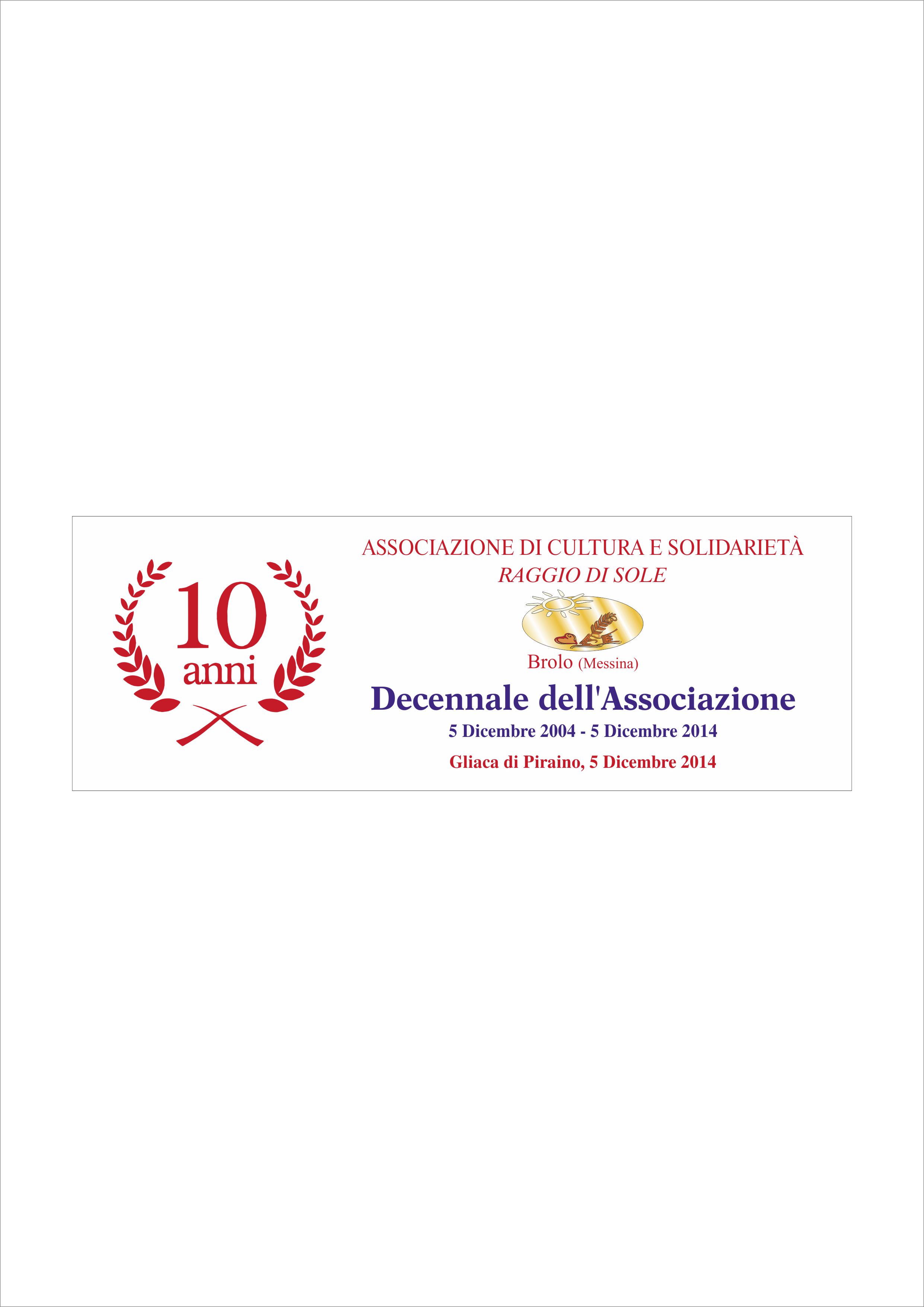 L’Associazione di Cultura e Solidarietà Raggio di Sole di Brolo, fondata dal Poeta Rosario La Greca, festeggia il 5 Dicembre il 10° anno di vita.