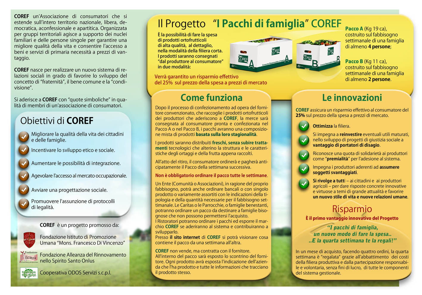 L’Associazione Cirfen Messina-Peloro ha stipulato con CO.RE.F – “Associazione Italiana dei Gruppi di Consumo Responsabile e Fraterrno” un accordo di collaborazione rivolto alle famiglie al fine di agevolare l’acquisto di prodotti ortofrutticoli di alta qualità con consegna direttamente dal produttore al consumatore.