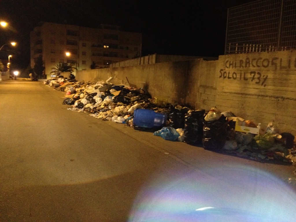 “Ormai siamo abituati a vedere montagne di rifiuti per tutta la città” ci dice un affezionato lettore “…ma vedere anche il bidone della “differenziata” gettato nella spazzatura è davvero pazzesco..specialmente per tutti coloro che collaborano a migliorare questa cittadina e che rispettano le leggi gettando la spazzatura dopo le 19.30, che dividono la plastica, la carta, e sopratutto il materiale organico..!!”