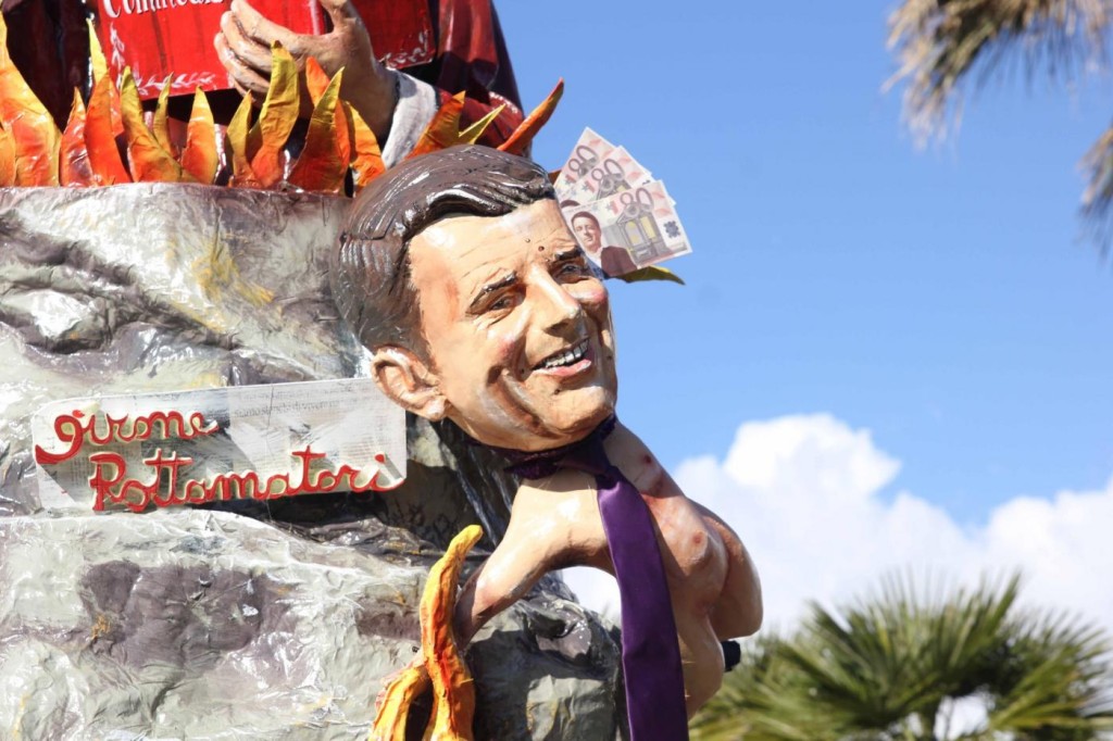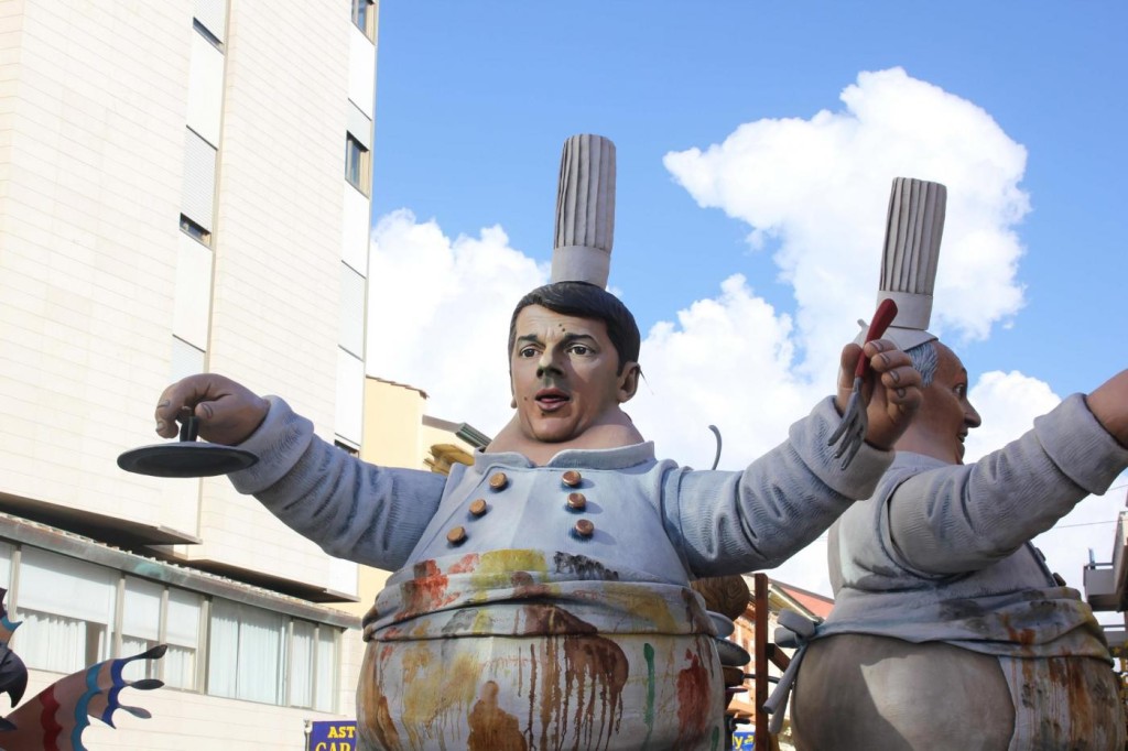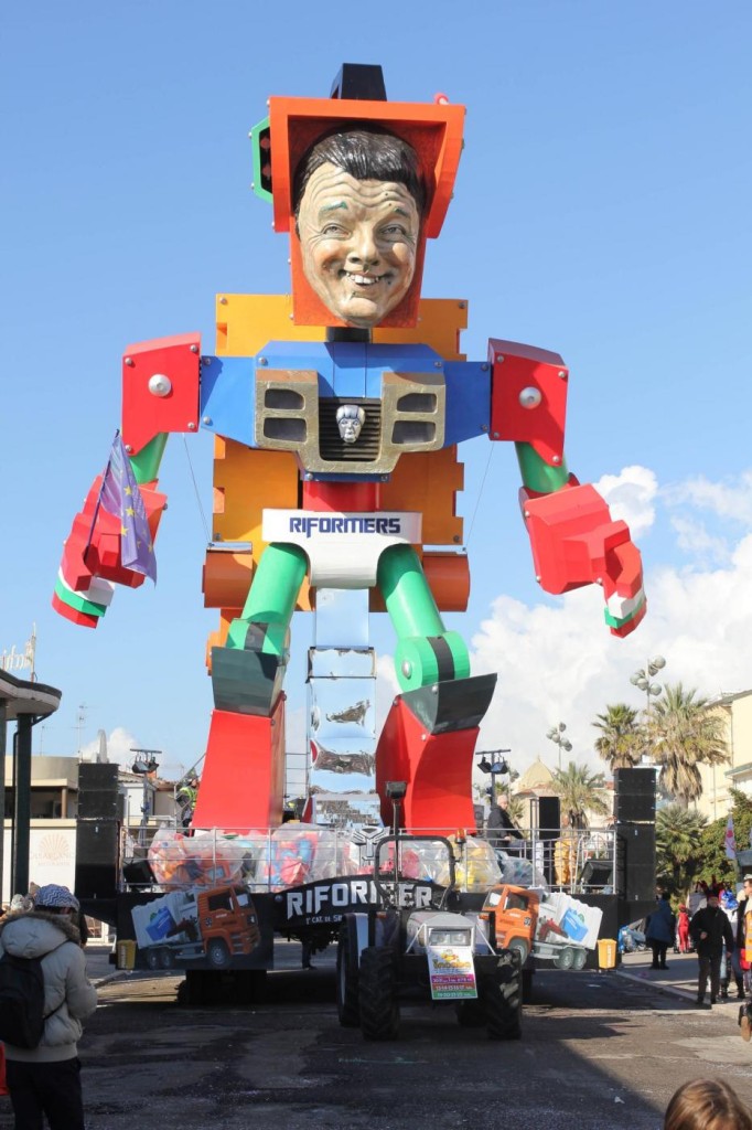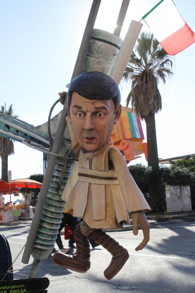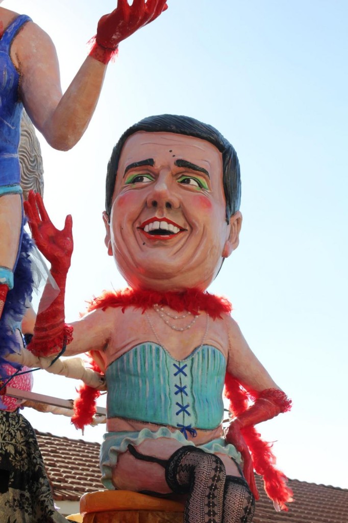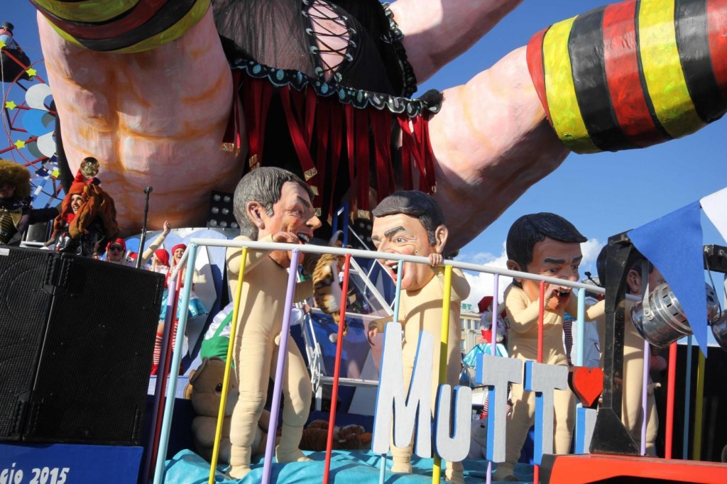 Ieri nel soleggiato pomeriggio di Viareggio si è svolta la prima sfilata del Carnevale italiano 2015. Tra gli altri protagonisti, di cui avevamo già svelato i volti, c’è stata la sorpresa Mattarella. Infatti, il capo di Stato eletto sabato, ha prontamente preso un posto nella parata, anche se solo in foto data la mancanza di tempo per dedicargli una maschera di cartapesta. In onore del neo Presidente della Repubblica ha suonato anche l’inno di Mameli. Il suo predecessore, Giorgio Napolitano, è comparso, al contrario, con la scritta ‘dimesso’. E’ stato raffigurato con pantofole davanti alla tv. Il politico più gettonato è stato il premier Matteo Renzi, presente su quasi tutte le costruzioni che hanno scelto la satira politica come linguaggio principale. Molti sono stati i carri ironici e che hanno fatto discutere come: quello dedicato a Angela Merkel, raffigurata in una sala parto che dà alla luce tanti piccoli e irriverenti Renzi; quello che raffigurava Obama; Putin; Papa Francesco, che rappresentava il paladino degli omosessuali sorretto sulle spalle da un Vladimir Putin a cui spetta il ruolo del pregiudizio.
