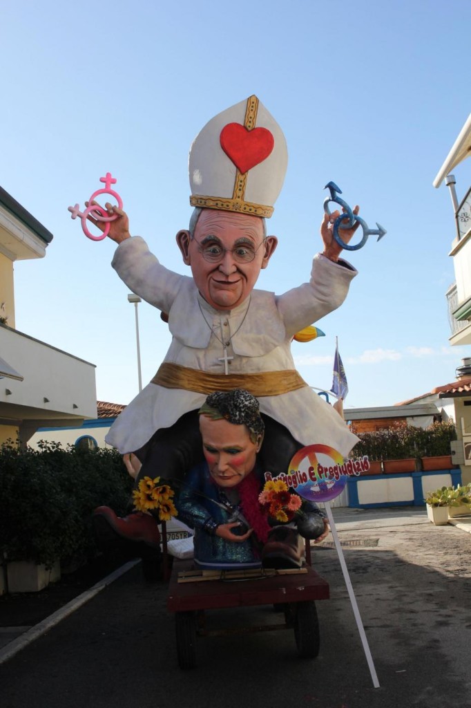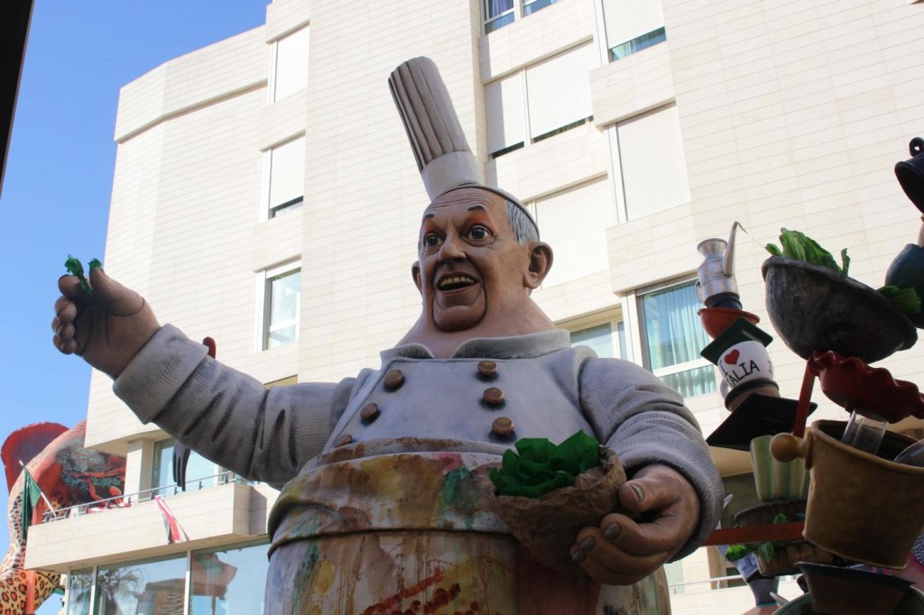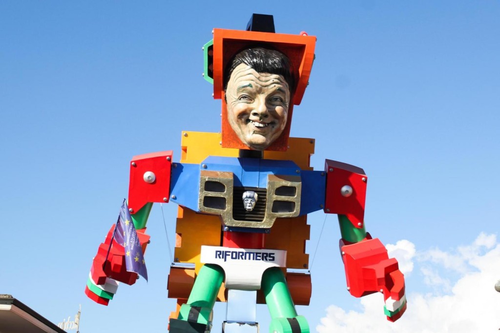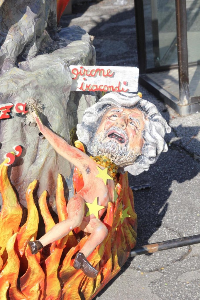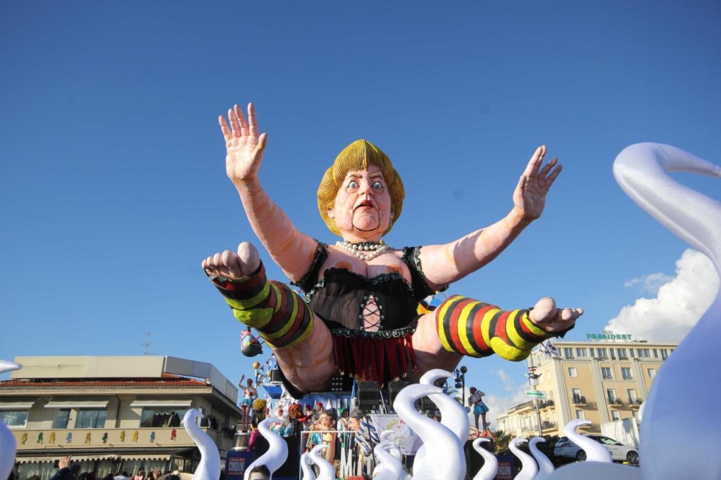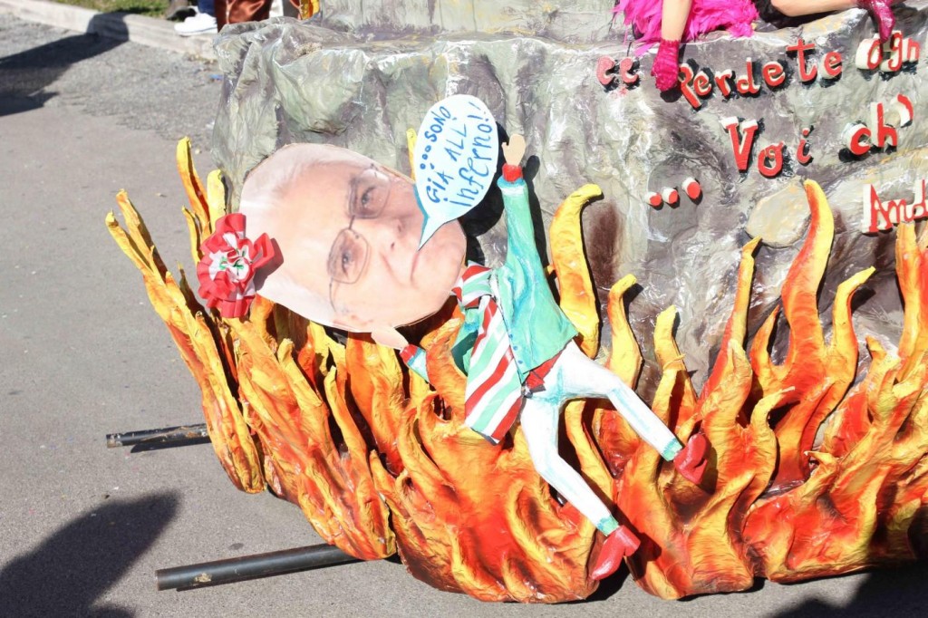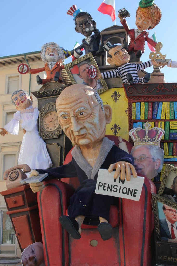 Ieri nel soleggiato pomeriggio di Viareggio si è svolta la prima sfilata del Carnevale italiano 2015. Tra gli altri protagonisti, di cui avevamo già svelato i volti, c’è stata la sorpresa Mattarella. Infatti, il capo di Stato eletto sabato, ha prontamente preso un posto nella parata, anche se solo in foto data la mancanza di tempo per dedicargli una maschera di cartapesta. In onore del neo Presidente della Repubblica ha suonato anche l’inno di Mameli. Il suo predecessore, Giorgio Napolitano, è comparso, al contrario, con la scritta ‘dimesso’. E’ stato raffigurato con pantofole davanti alla tv. Il politico più gettonato è stato il premier Matteo Renzi, presente su quasi tutte le costruzioni che hanno scelto la satira politica come linguaggio principale. Molti sono stati i carri ironici e che hanno fatto discutere come: quello dedicato a Angela Merkel, raffigurata in una sala parto che dà alla luce tanti piccoli e irriverenti Renzi; quello che raffigurava Obama; Putin; Papa Francesco, che rappresentava il paladino degli omosessuali sorretto sulle spalle da un Vladimir Putin a cui spetta il ruolo del pregiudizio.