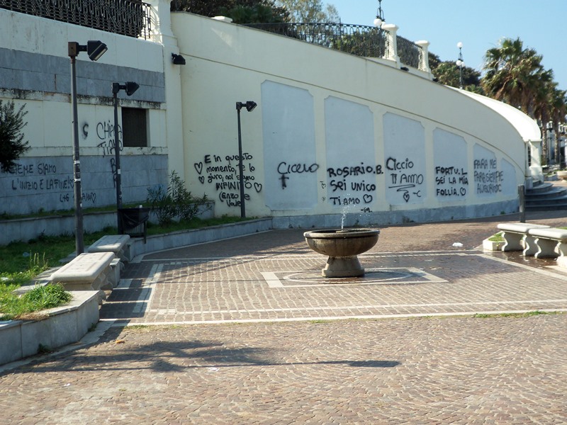 Prossimi alla bella stagione per godersi mare, sole e la straordinaria bellezza del panorama, non potremo evitare di rammaricarci per le dabbenaggini di pochi incivili e stupidi che da anni imbrattano i muri del lungomare “Italo Falcomatà”, come fossero carta straccia! Le note di biasimo non tarderanno a riempire le pagine dei giornali di mezza Europa che si domanderà come si permette ciò! Poi, marmette dei corridoi pedonali rotti, scalinate con escrementi di animali, faretti spenti e plafoniere spaccate. Palme non curate sul bagnasciuga e poste in modo asimmetrico e cavi elettrici non messi in sicurezza che vengono fuori dalla “sabbia”. Bottiglie sparse qua e là, lasciate “senza volerlo”, dai dediti all’alcool. Eppure sono in pochi, a essere così privi di cultura e di appartenenza alla città, alla sua storia e alle tradizioni. E’ mai concepibile che non si considerino i sacrifici di uomini illustri e di semplici cittadini che hanno speso, talvolta, anche la loro vita per “la bella e gentile” Reggio! Allo stesso modo, come si può fare a non deprecare chi assiste allo scempio senza far nulla! Mi chiedo: sarà monitorato il Lungomare da telecamere? Chi è preposto a osservare le riprese video degli atti vandalici? Chi dovrebbe intervenire per reprimere? Sono stati mai risarciti i danni causati? Politici e amministratori arrossiscono per la loro e