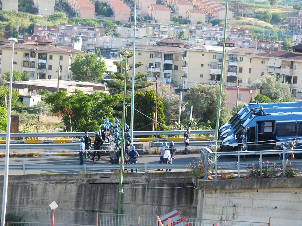 Momenti di tensione in questi minuti fuori dallo stadio San Filippo: alcuni tifosi del Messina stanno cercando di venire a contatto con quelli della Reggina incamminandosi lungo la rampa autostradale di San Filippo per raggiungerli. Predisposto un folto blocco dei celerini. La situazione, comunque, sembra sotto controllo.