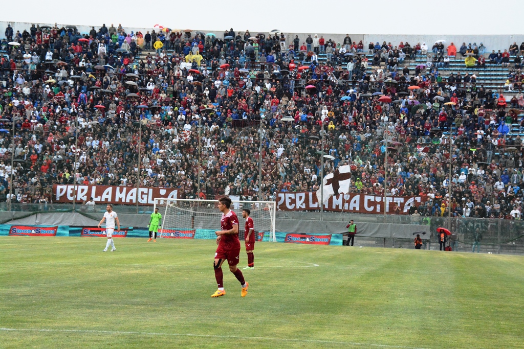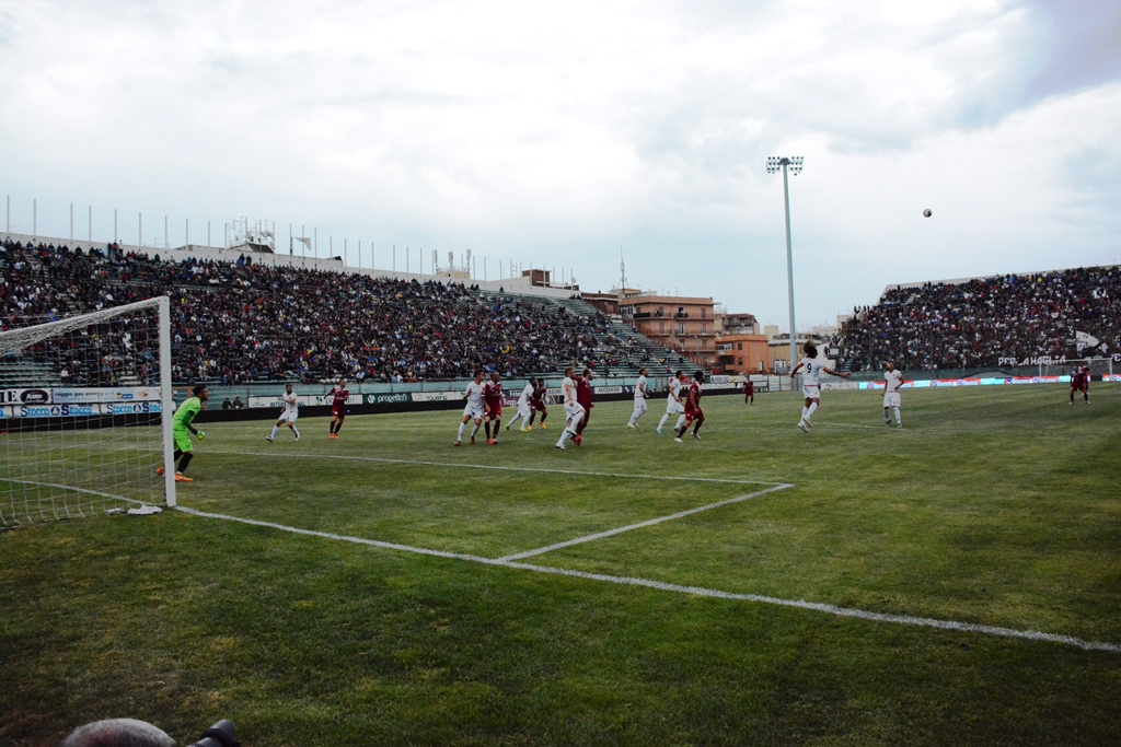 Fino a 5 giorni fa, questa partita neanche si doveva giocare. La Reggina era retrocessa in serie D, il Messina avrebbe dovuto affrontare nei playout il Savoia già fallito. Poi il CONI ha restituito agli amaranto 2 punti di penalizzazione, la classifica è cambiata 10 giorni dopo la fine del campionato, in serie D c’è finito il Savoia e le due squadre dello Stretto si sono ritrovate in un derby drammatico. Chi lo perde finisce nei Dilettanti e rischia di sparire dal calcio. L’andata al Granillo, oggi alle 17: oltre 9.000 spettatori, nonostante si giochi sotto la pioggia, di pomeriggio in un giorno feriale.