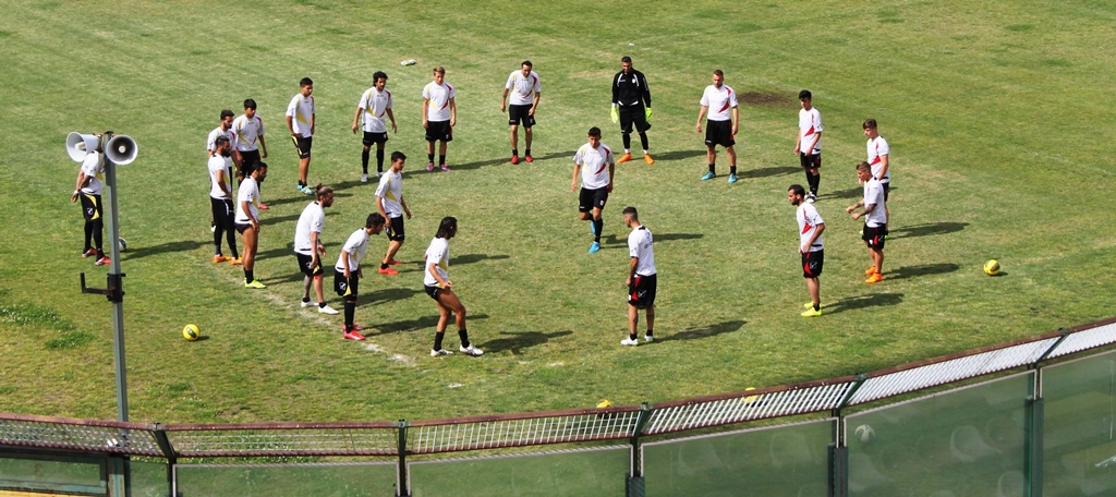 La squadra s’è allenata agli ordini di mister Nello Di Costanzo sotto i cori di incitamento dei tifosi più passionali; unica nota stonata il lancio di numerose bombe carta, assolutamente non consono neanche nelle partite (dove comunque ormai gli Ultras in tutti gli stadi d’Italia ci hanno abituato da tempo…), a maggior ragione in un allenamento…