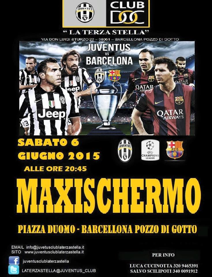 Ora è ufficiale: in occasione della finalissima di Champions League, sabato 6 Giugno 2015, lo Juventus Club Doc La Terza Stella sta provvedendo all’allestimento di un maxi-schermo da collocare in piazza Duomo. L’organizzazione dell’evento – regolarmente autorizzato dal Comune -è giunta a buon fine grazie al sostegno economico di alcuni tifosi juventini e di alcuni cittadini. Inizio della gara è fissato alle 20.45. Anche a Messina sarà possibile assistere alla finale di Champions League in pubblico con un maxi-schermo allestito addirittura con il supporto del Comune, precisamente all’Arena Cicciò, scelta invece diametralmente opposta dall’altra parte dello Stretto a Reggio Calabria.