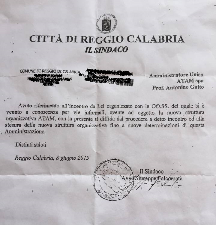 Quanto al resto, sarà tutto di competenza della stessa azienda e dell’amministrazione comunale che dovranno ottemperare le prescrizioni mantenendo gli impegni assunti in più occasioni, sia in sede politica che giudiziaria. A tal proposito risulta preoccupante lo stop che il sindaco Falcomatà ha imposto all’amministratore Atam con la “diffida dal procedere” (vedi documento a corredo dell’articolo) a una delle componenti più importanti del piano di risanamento, cioè la riorganizzazione della pianta organica che il prof. Gatto aveva cominciato avviando le trattative sindacali così come previsto dalla legge. L’augurio è che si anteponga a qualsiasi altro tipo di logica politica e sindacale l’obiettivo prioritario, che è quello di salvare l’Atam.