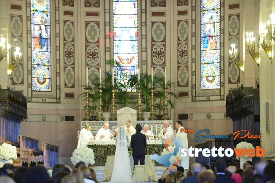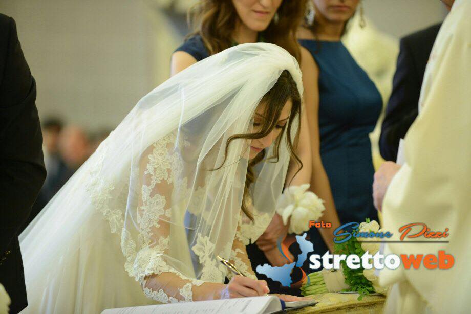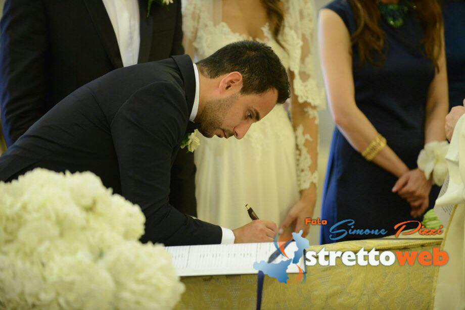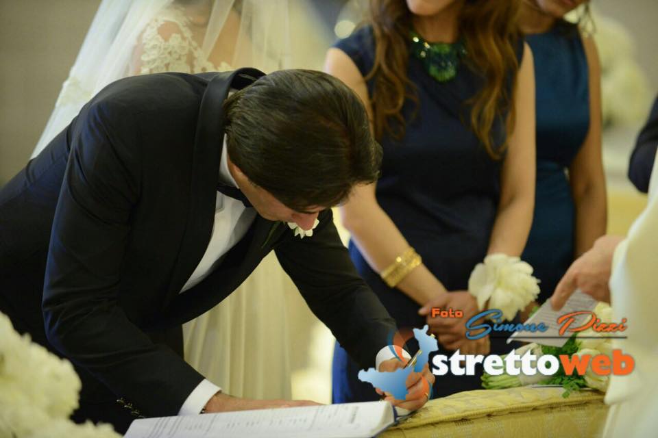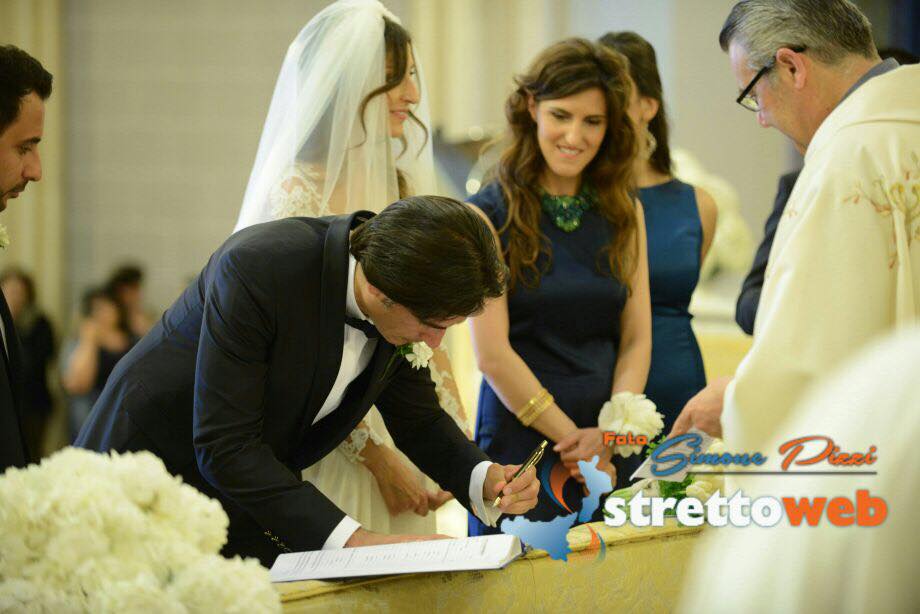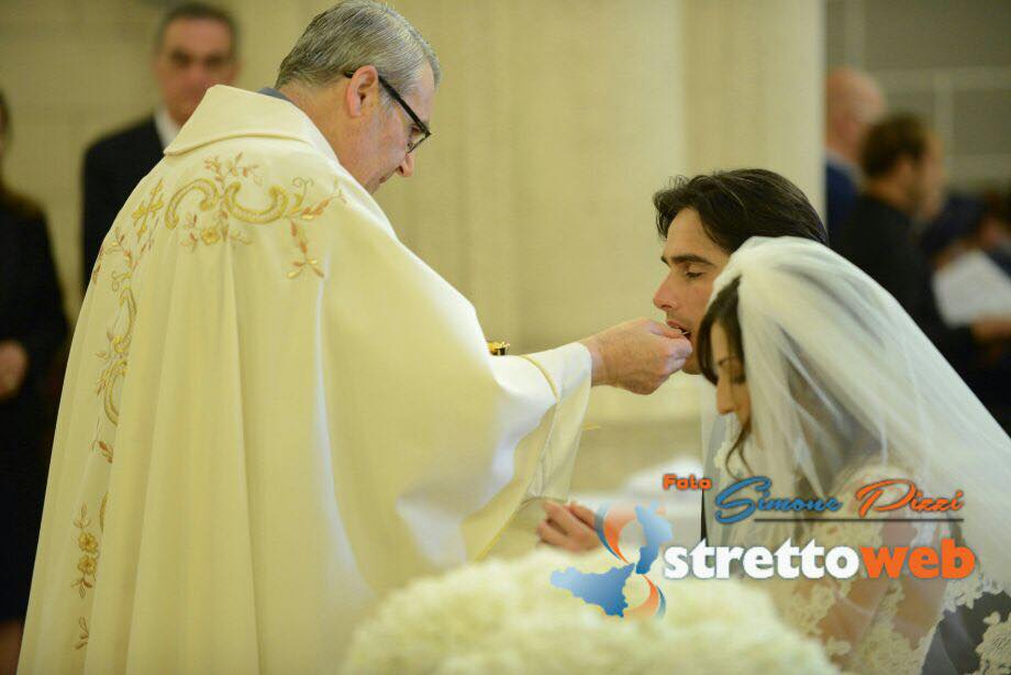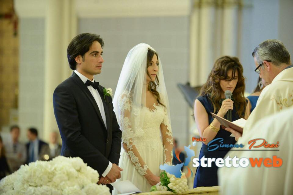 Nessun scivolone a causa dell’emozione neanche al momento delle promosse, che i due hanno letto con fermezza e sicurezza. Dopo che Monsignor Polimeni ha pronunciato la tradizionale frase “adesso siete marito e moglie”, un applauso fragoroso si è alzato dalle navate, applauso che ha racchiuso tutto il calore e l’affetto degli invitati e dei cittadini reggini per il proprio Sindaco e la sua sposa. Giuseppe Falcomatà, emozionato, bacia la sposa sulla fronte. Sul finire della cerimonia, Monsignore Polimeni ha consegnato un biglietto di auguri da parte dell’Arcivescovo di Reggio. Alla fine della cerimonia gli invitati si sono accalcati sull’altare per dare gli auguri ai neo sposi, ci sono stati un pò di rallentamenti proprio per l’uscita dalla chiesa degli sposi poichè le persone non avevano intenzione di uscire per godersi ogni minuto post cerimonia. Finalmente, verso le 18.20, gli sposi sono usciti trionfalmente dal Duomo, accolti dalla folla e da una pioggia di riso e petali di rose bianche. I neo sposi si sono concessi ai fotografi, a bordo della Maserati, sorridevano e mostravano fieri la mano con la fede.